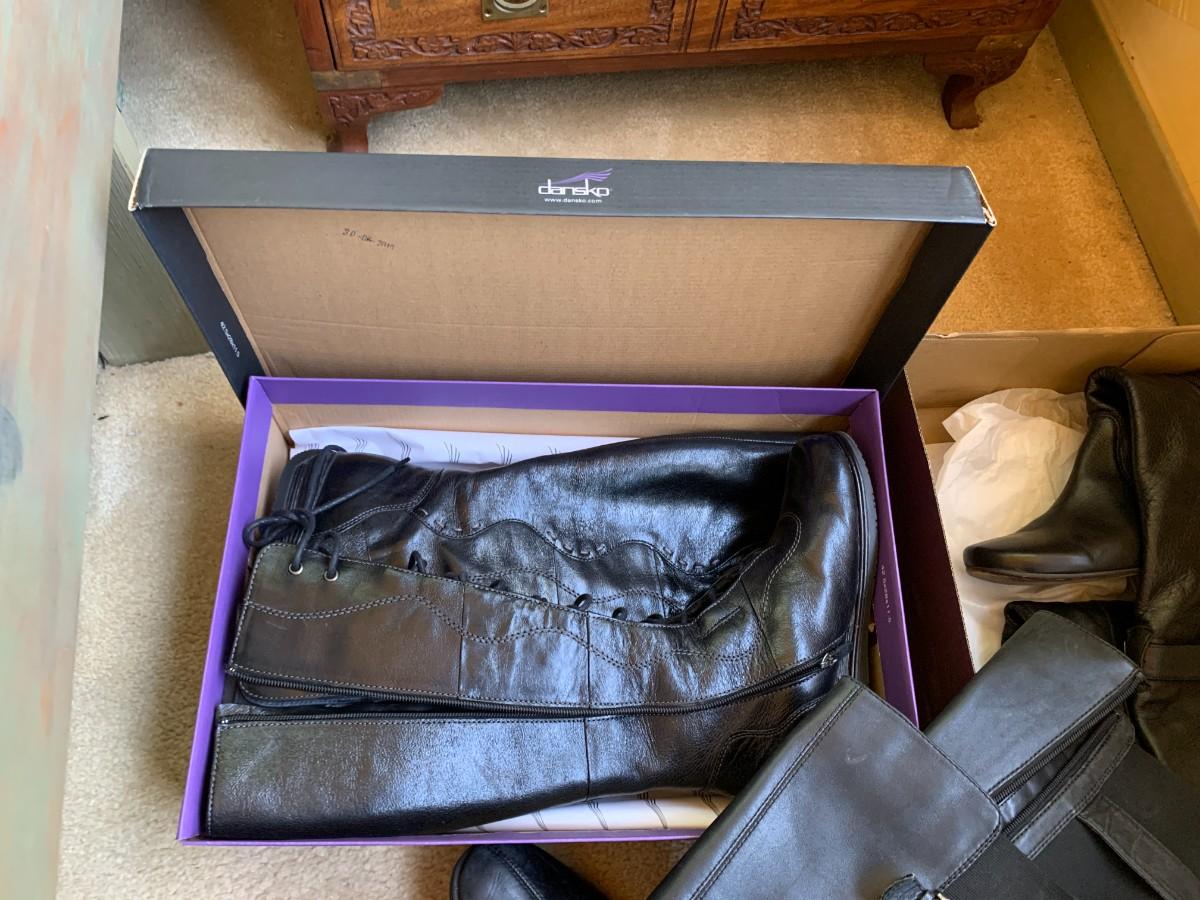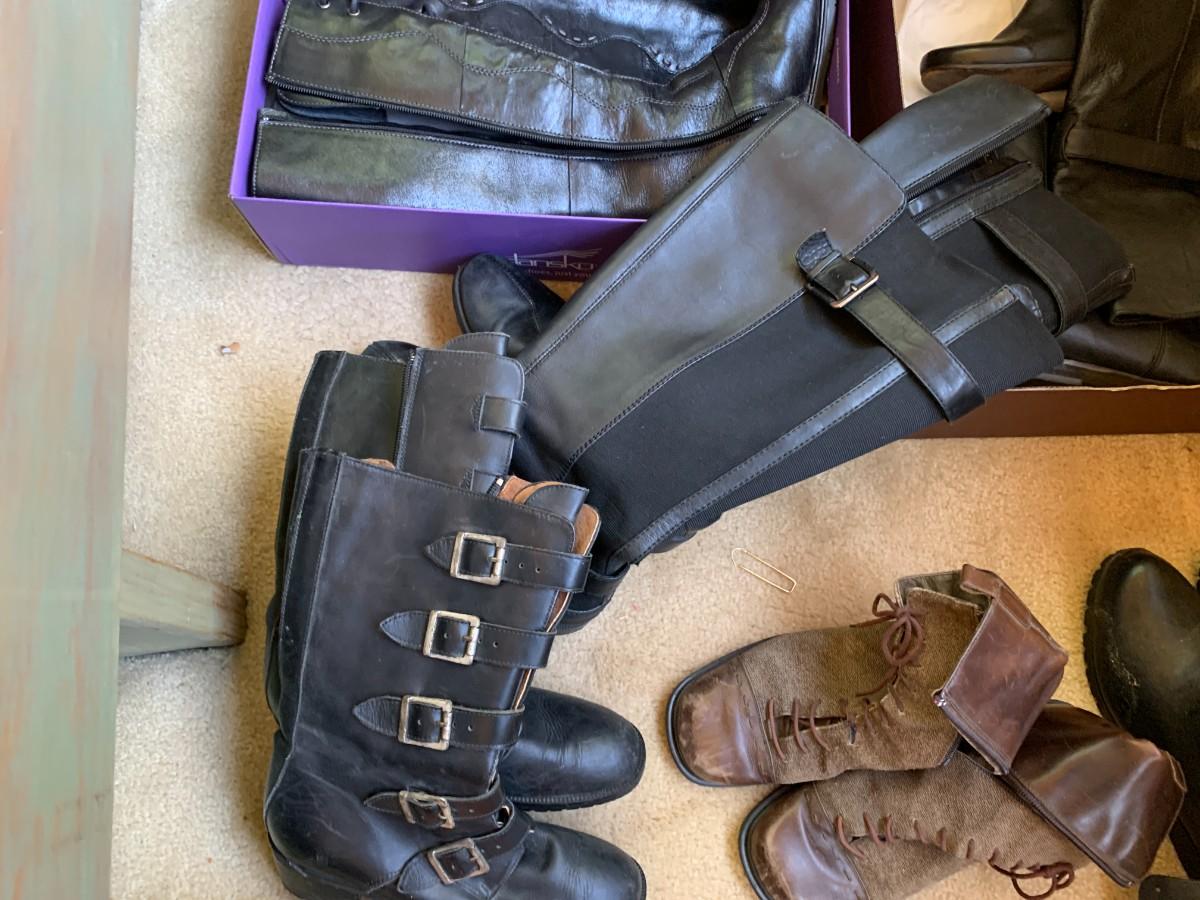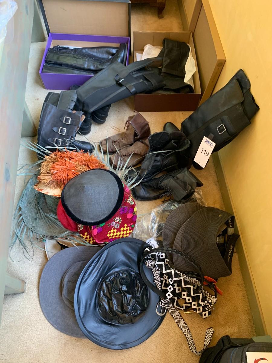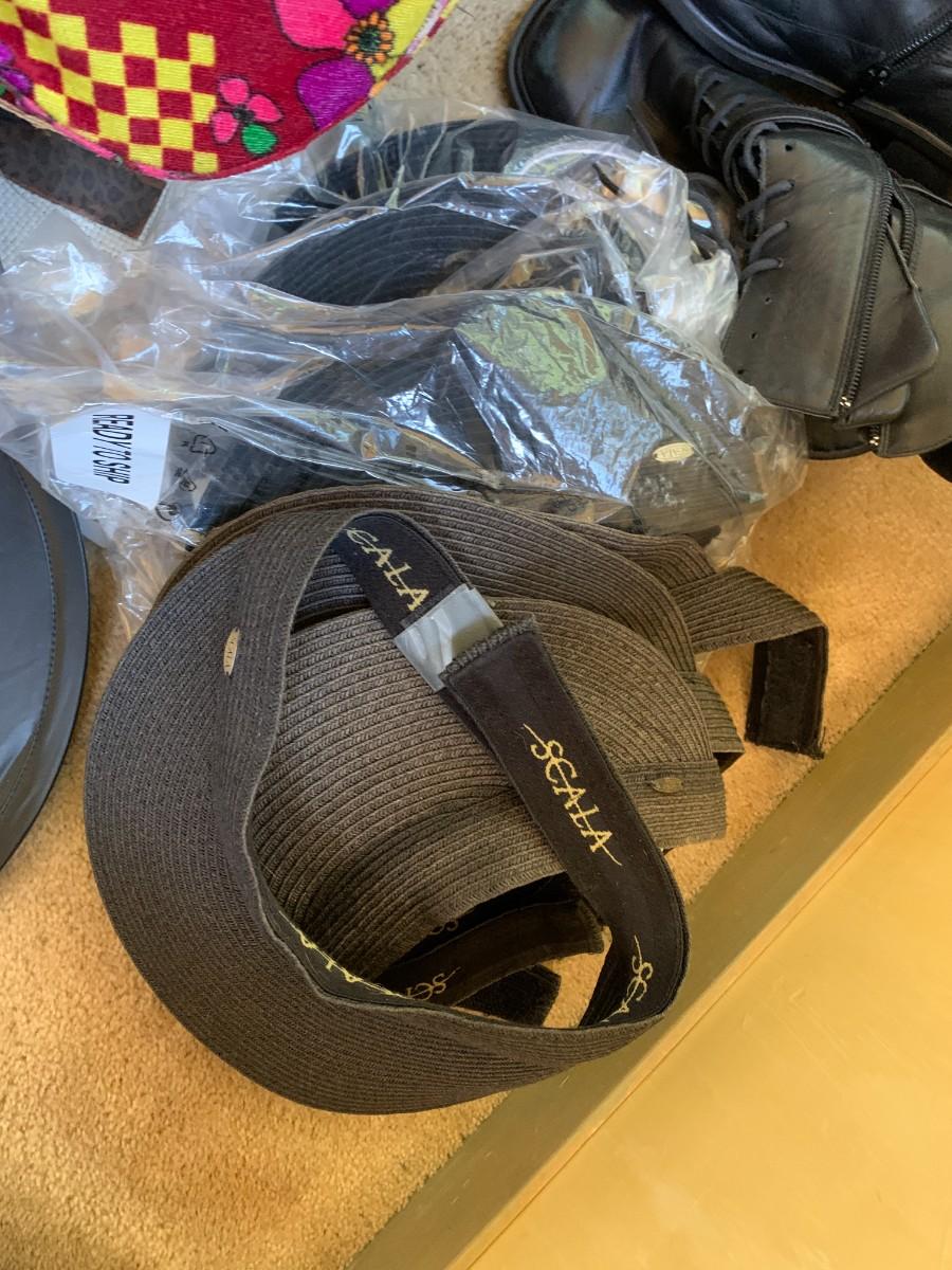 Boots, mostly size 7 - 7.5US and 37 -37.5Eur. Some new. Scala visors, some used and 5 new. Assorted hats
