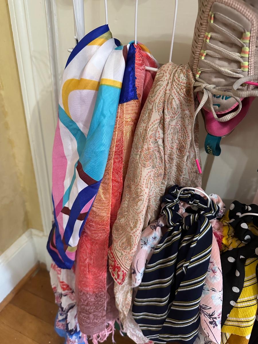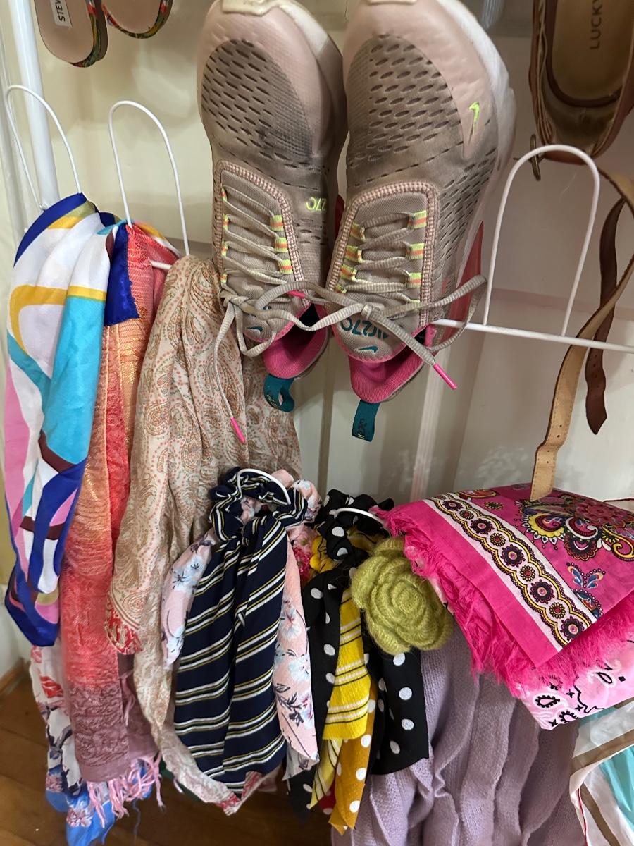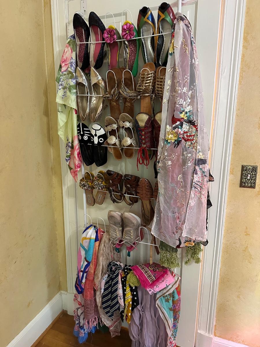SHOES ALL SIZE 7.5 AND SCARVES AS PICTURED
