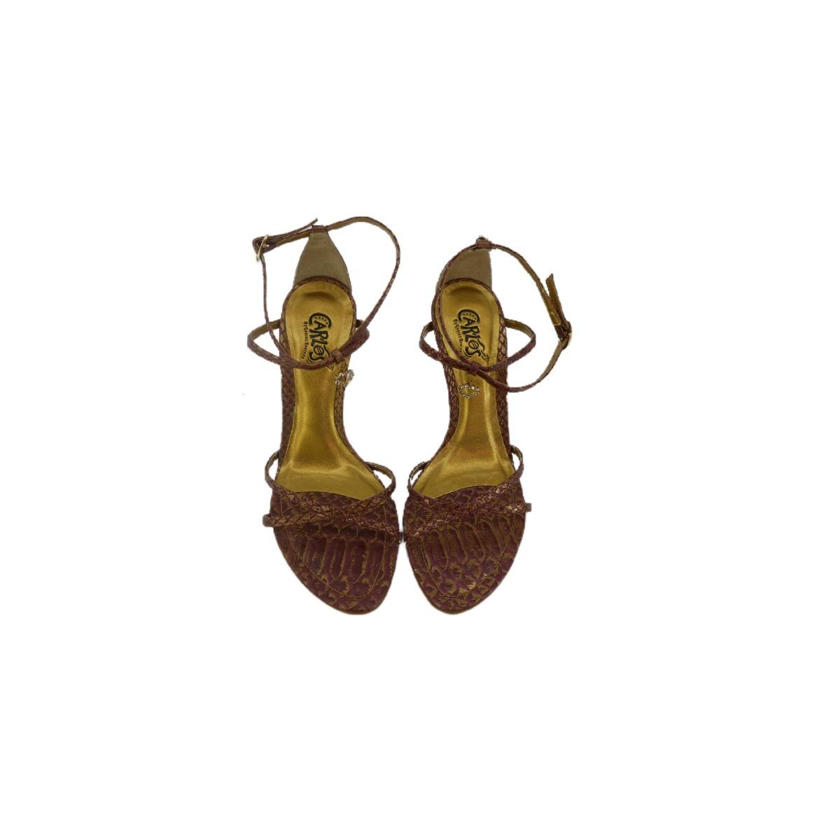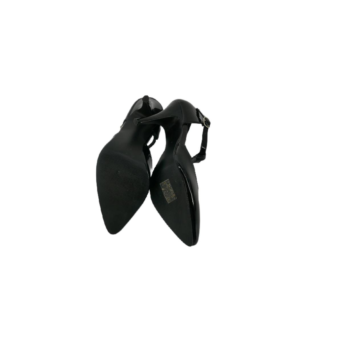 Two pairs of heels in women's size US 7. One black shiny Mary Jane style stiletto pump heels by Pleaser and one Carlos by Carlos Santana stiletto pump heels, made in Brazil with leather upper. Pre-owned, scuffing and marks may be present. Both in good condition. (F18)