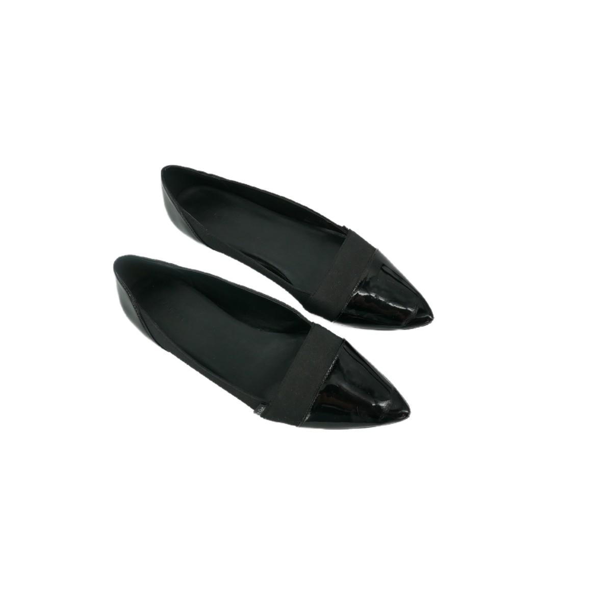 Four pairs of women's shoes size US 7.5. One pair magenta Nine West pumps, Enzo Angiolini leather loafer style flats, Taryn Rose pink ballet style flats, and black Calvin Klein pointed toe slip ons. Pre-owned, may have scuffs and marks. All in good condition. (F22)