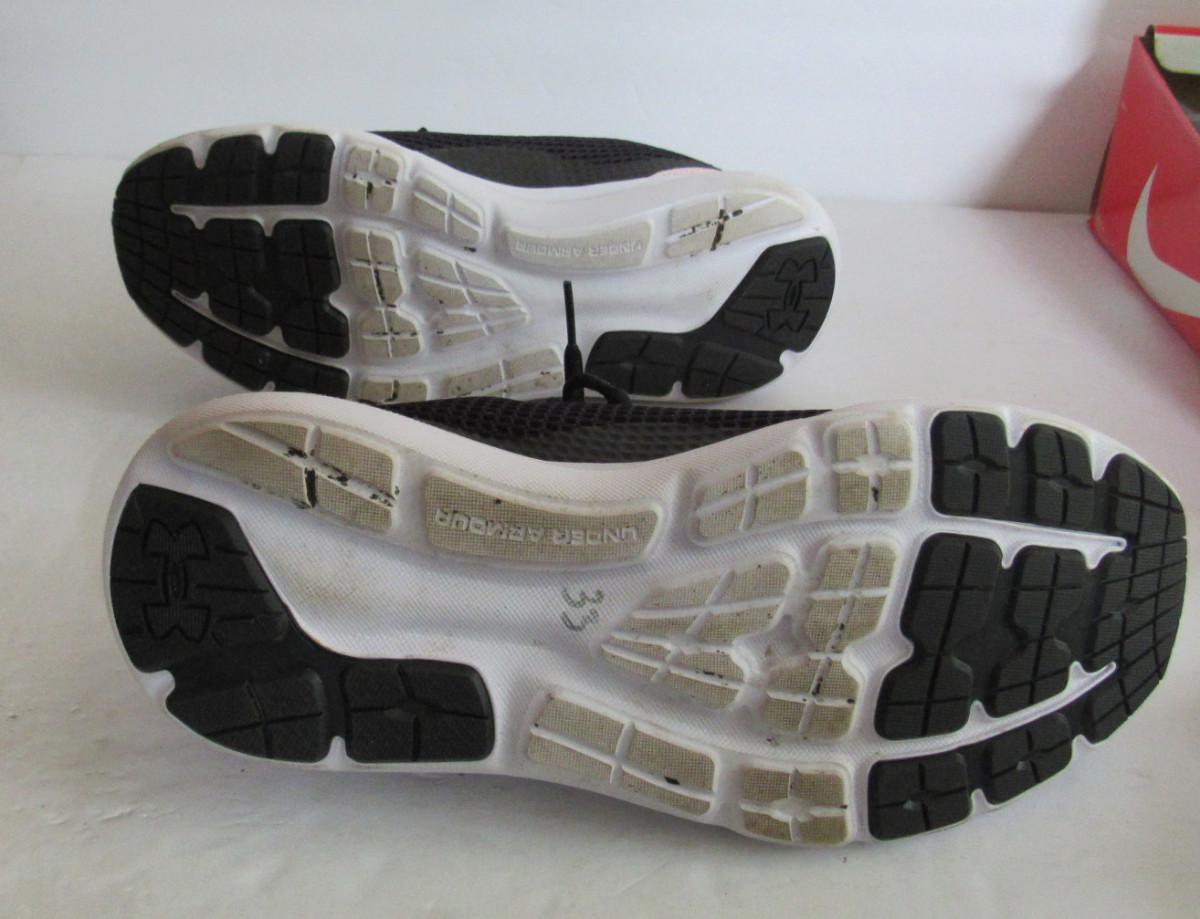 I think they are either 8 1/2 or 9 by the size of the woman's other shoes in this auction. Used but not too bad. Shipping is available at actual shipping cost plus $5.00 handling fee per box for supplies/labor. See our terms for details. All sales are final. Condition notes may not be all inclusive, we may miss some issues as most vintage items are not in mint condition and have some degree of wear, paint loss, etc, but we always try to note obvious damage.