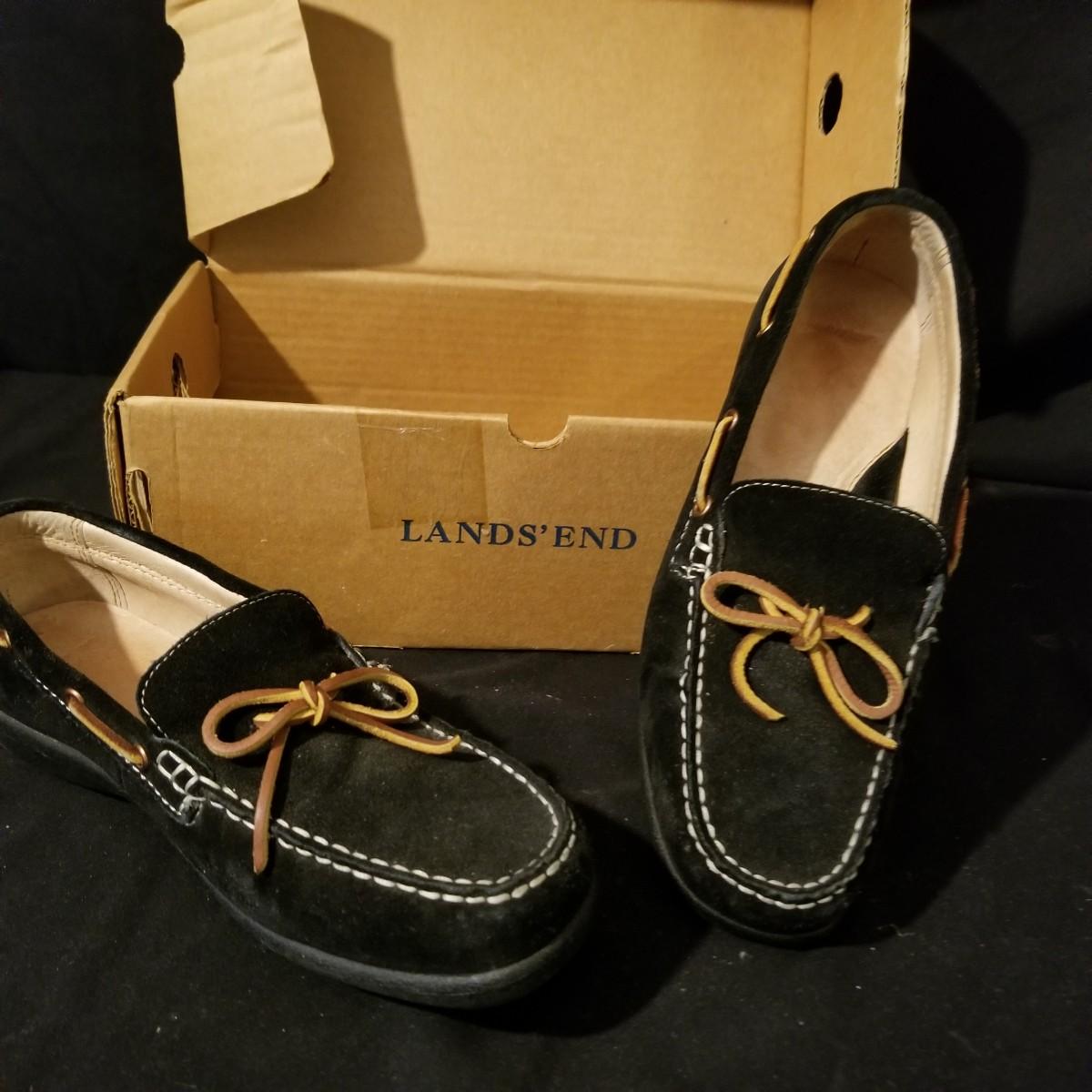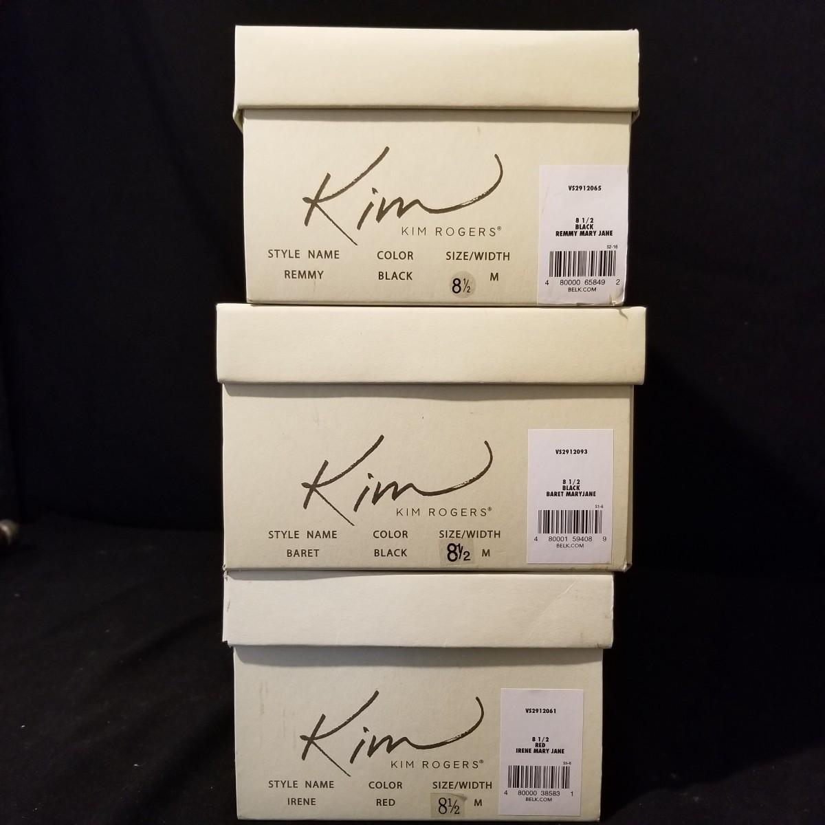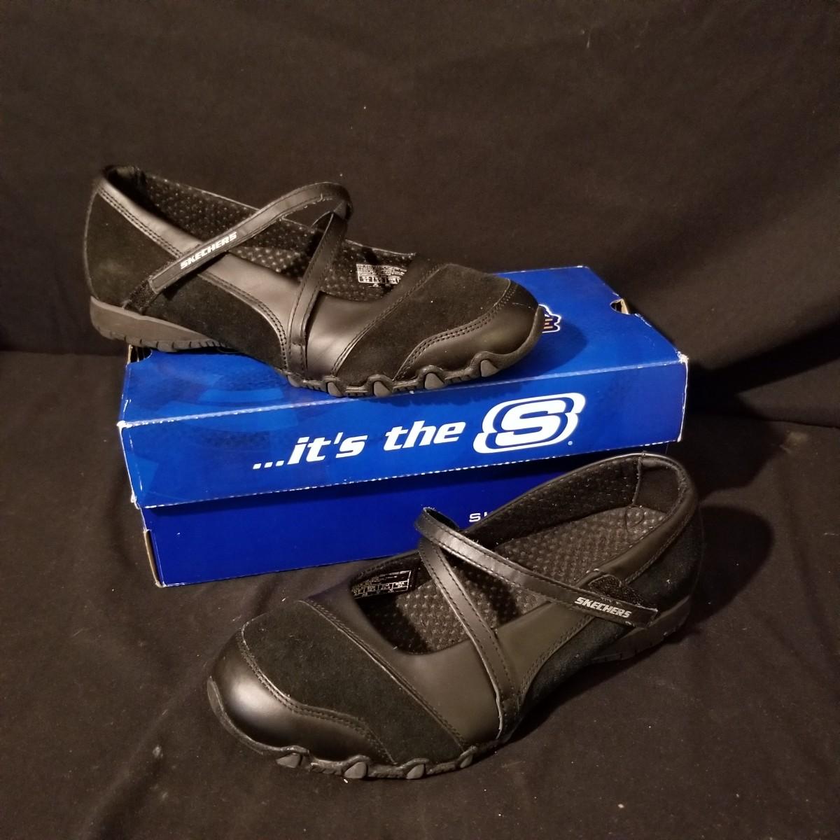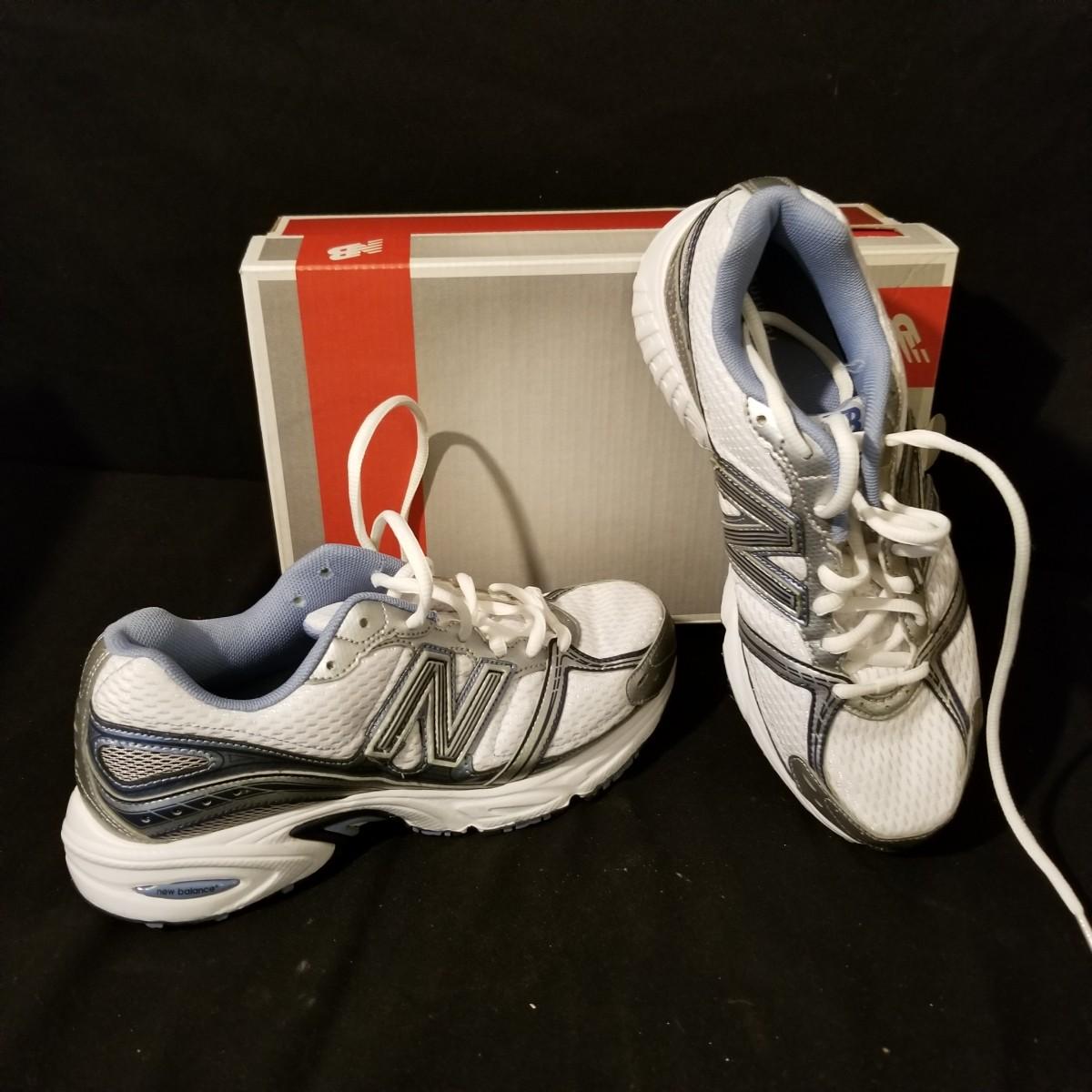 Six pairs of ladies shoes and three pairs of slippers. Kim Rogers, Skechers, Lands End, New Balance, and more. All items size 8.5 except gray slippers, which are XL. Items in fair to good condition, see photos for details.