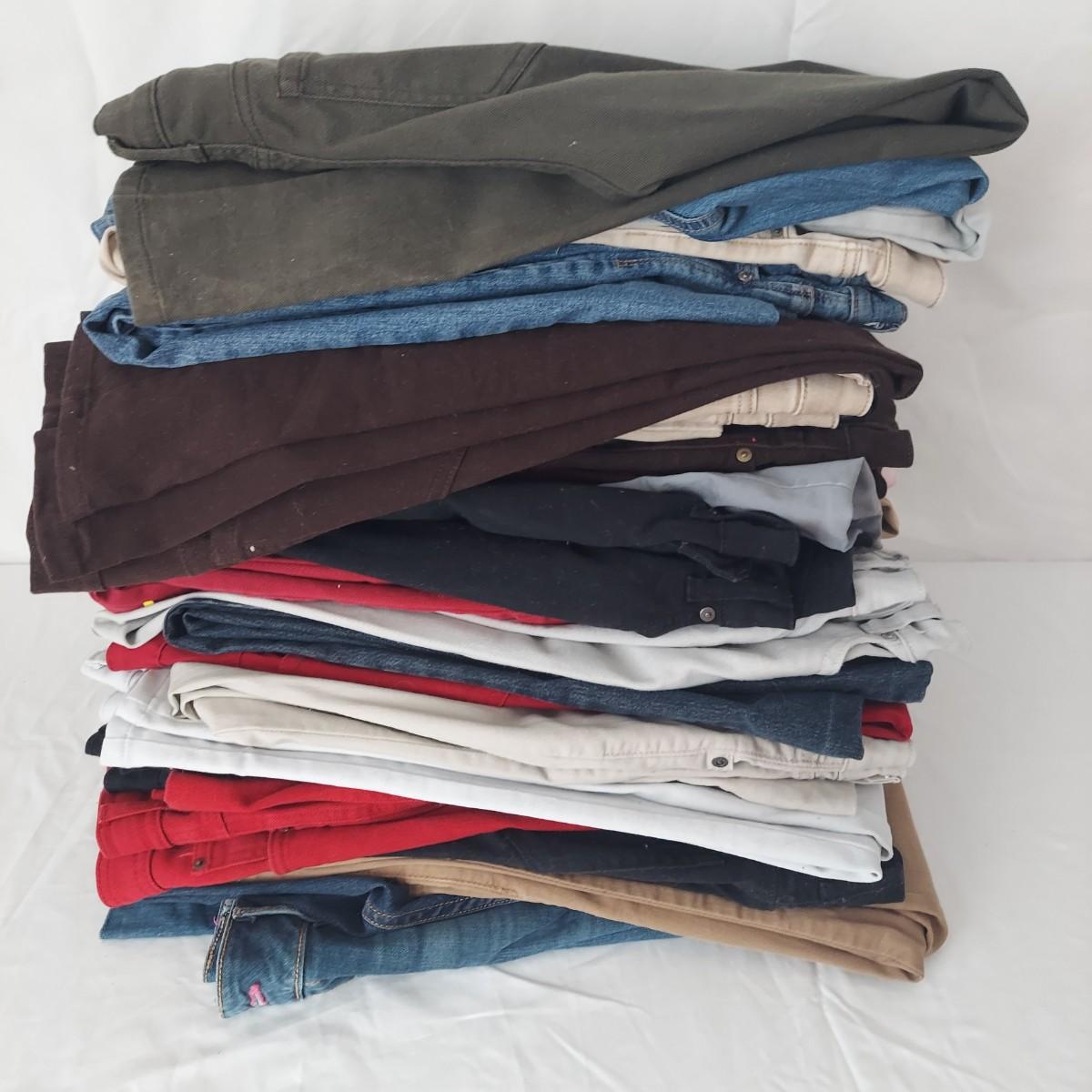 Large lot of women's stretch jeans and pants in mostly size 8. Brands include Gloria Vanderbilt, L.L. Bean and more. Some pairs have been cuffed and safety pinned while others have hand sewn hems. A few pairs were just folded. Please see photos for details. Shipping available