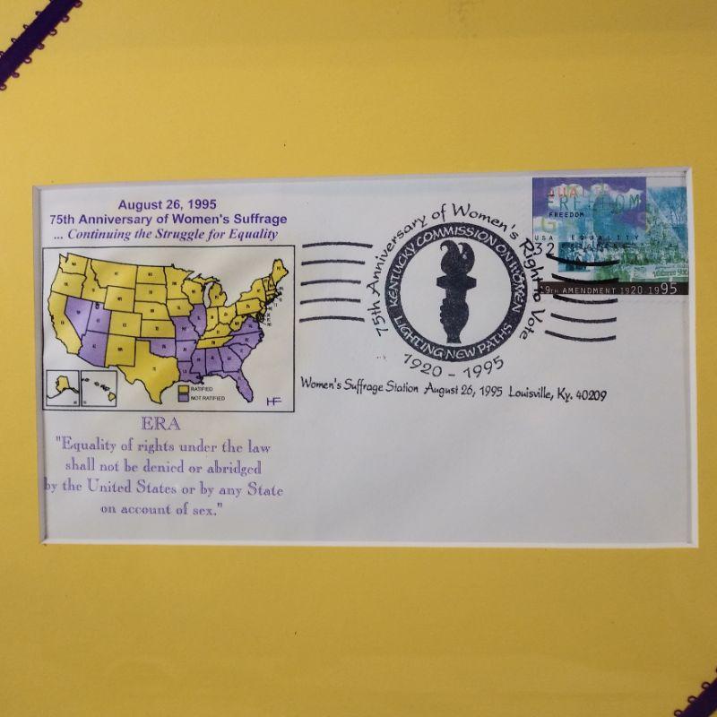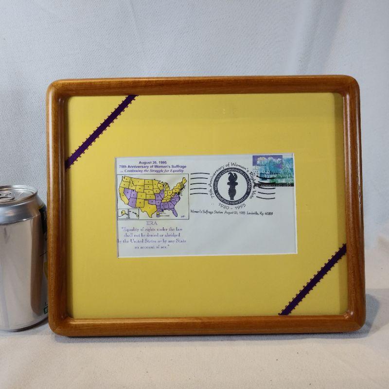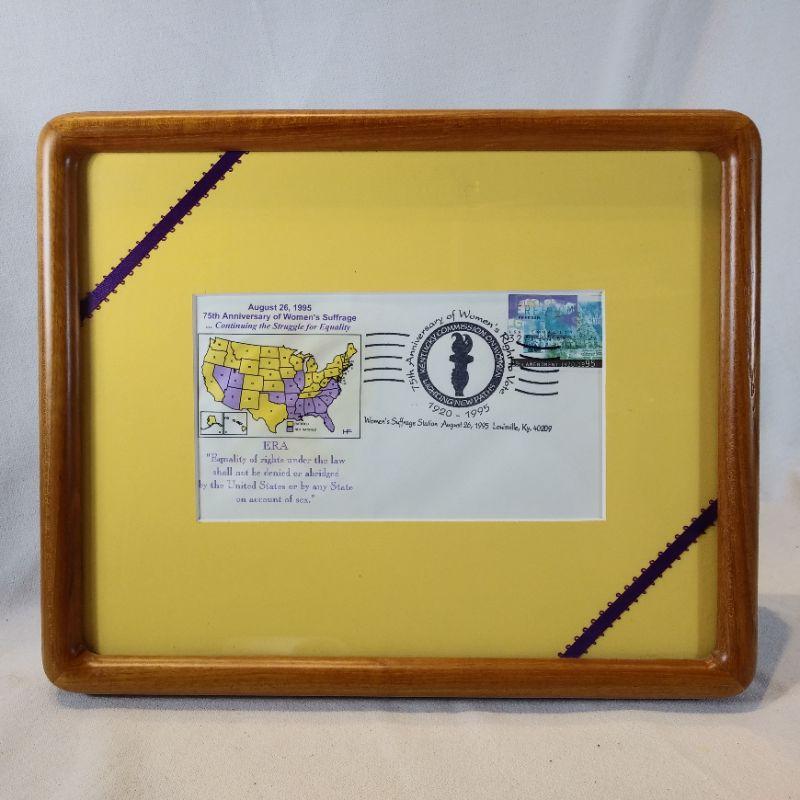 This unique offering is a framed 75th Anniversary of Women's Suffrage in 1995 - Postage Letter. Just in time for the upcoming 80th Anniversary. It is 9-inches tall X 11-inches wide - nicely framed. In very good condition.