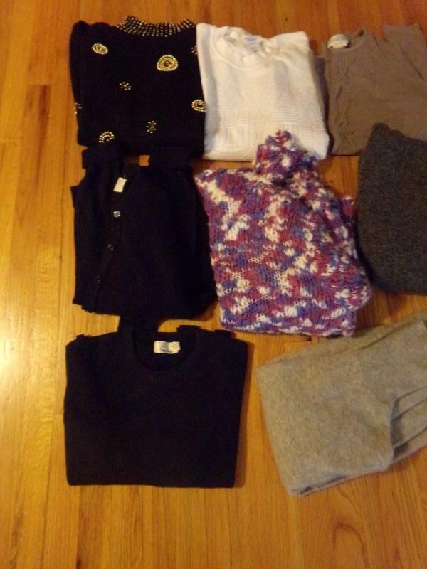 VARIETY OF WOMENS SWEATERS. SOME ARE MEDIUM AND XL.