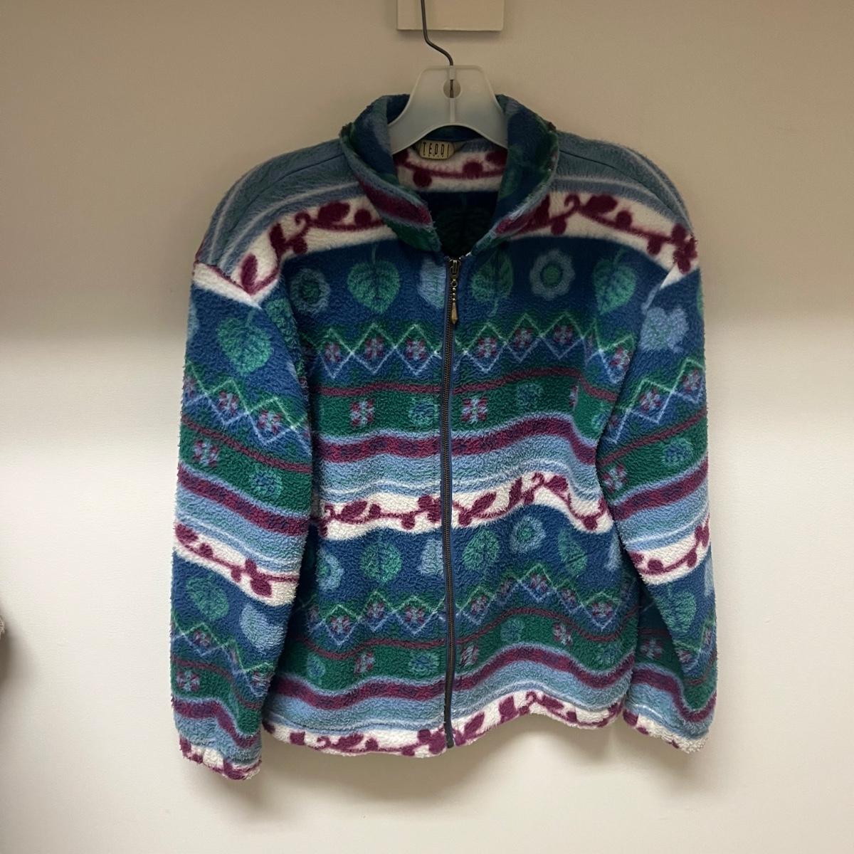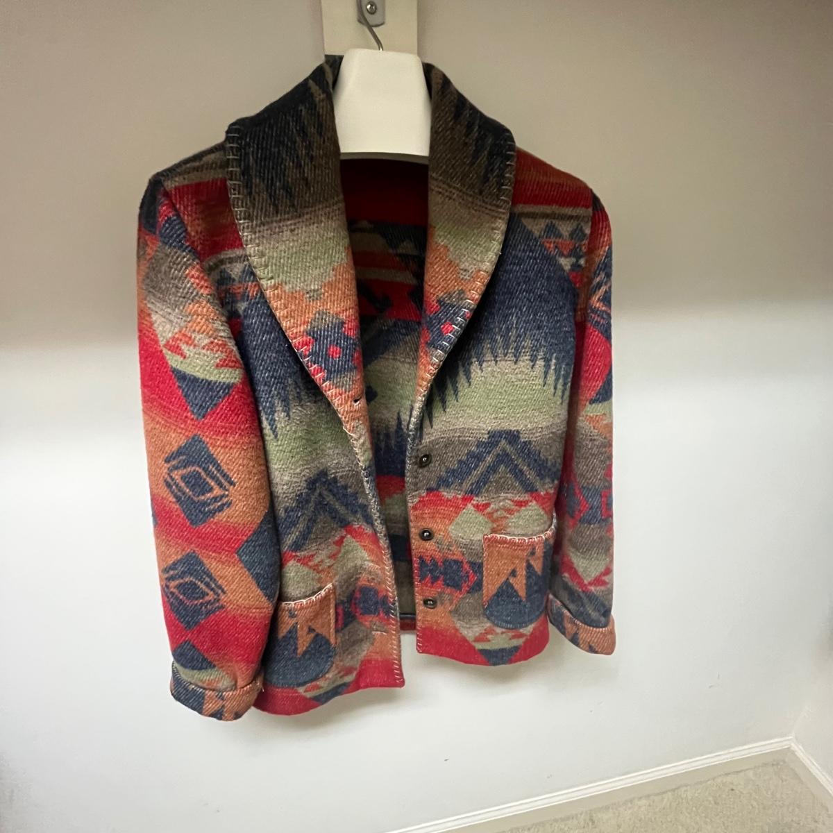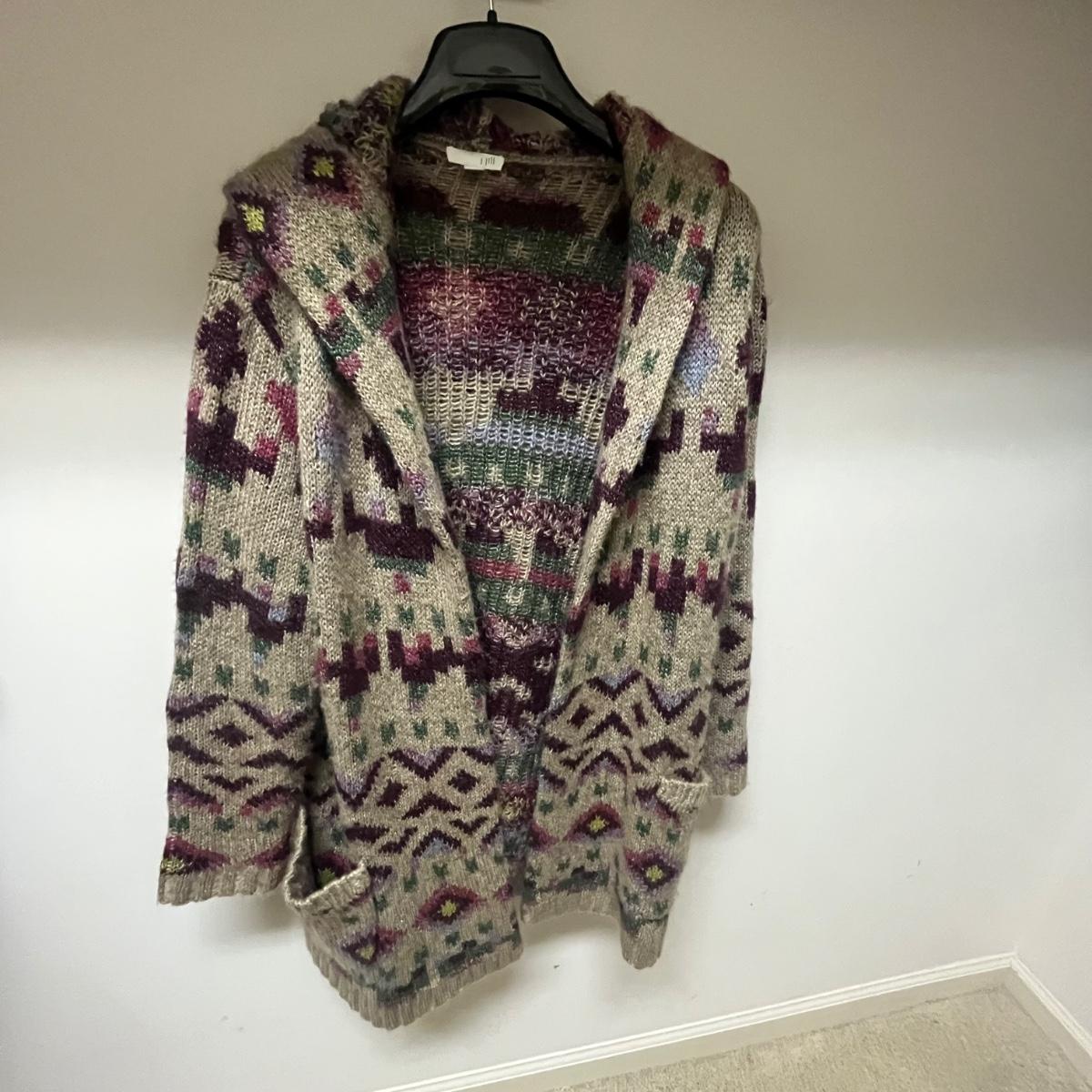 Lot includes a zip up sweater by Teddi, long wool wrap by Tara, double breasted Pendleton jacket that appears to be wool, jacket by The Territory Ahaed and a J Jill sweater. Also includes an unmarked blue scarf.