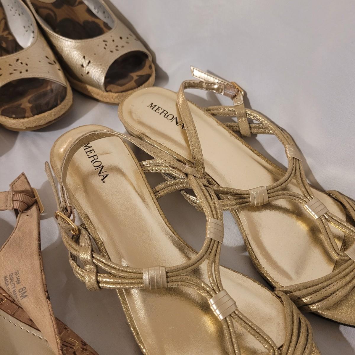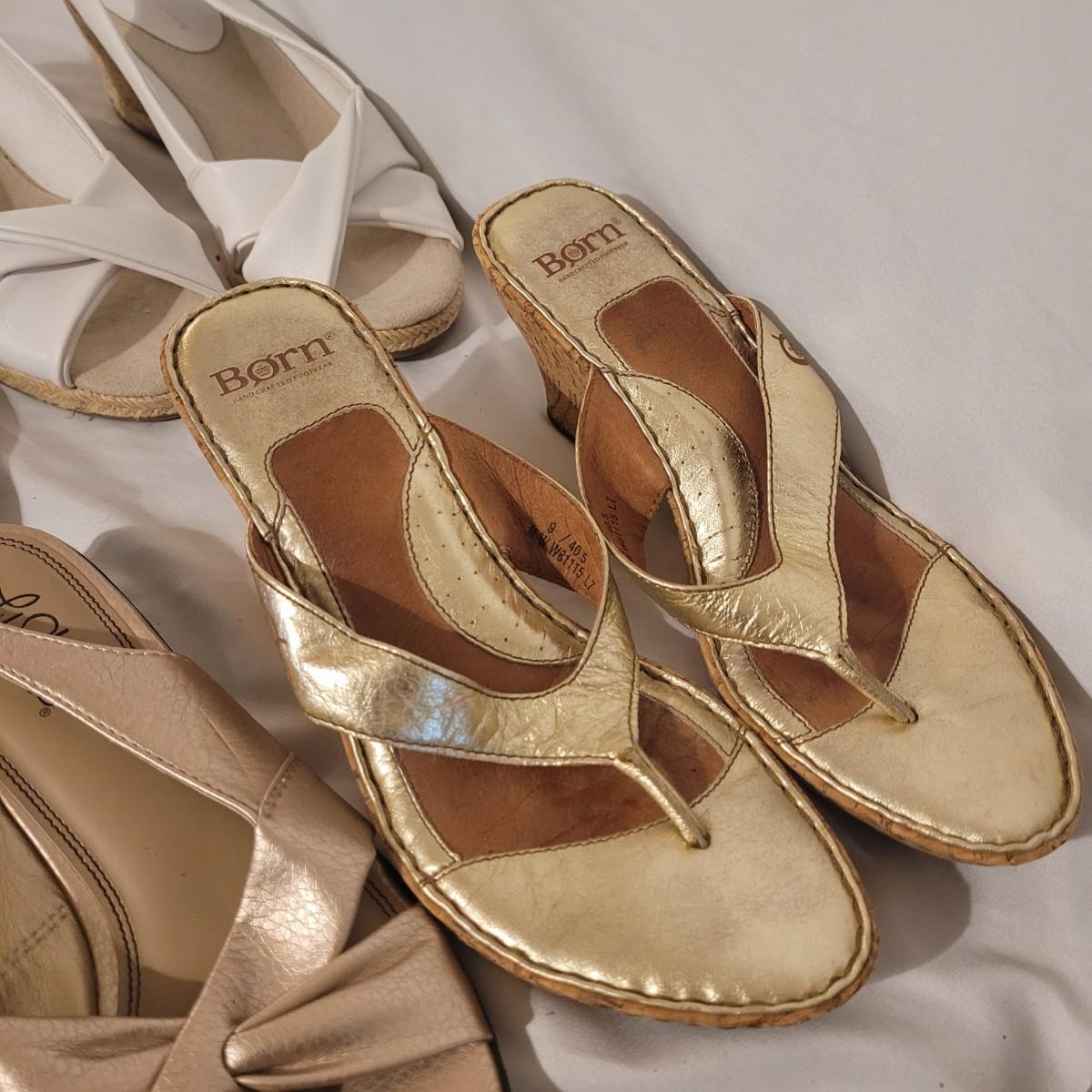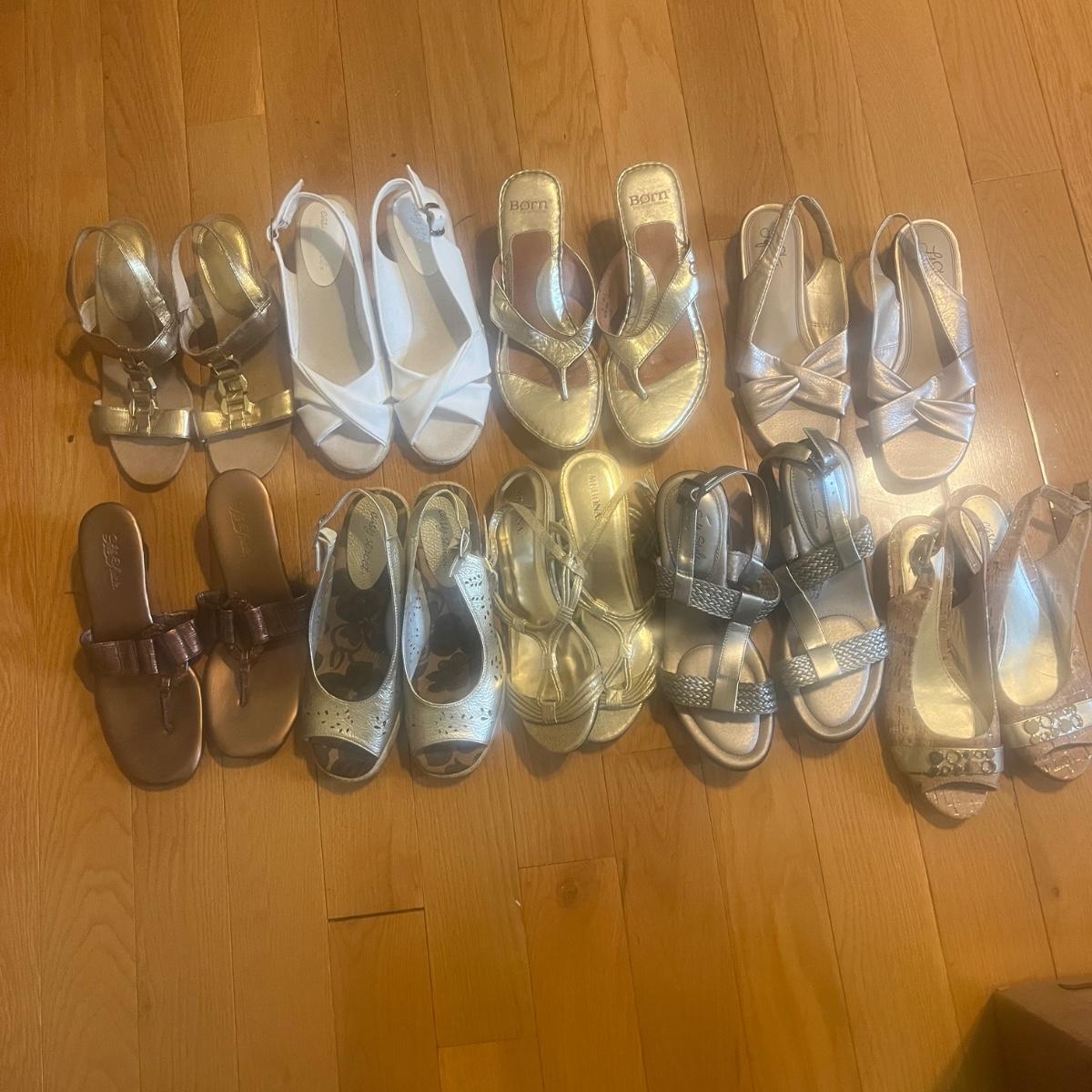 This lot includes nine pairs of strappy sandals, with a size range of 7 to 9. Brands include Born, Life Stride and more. Shipping available.