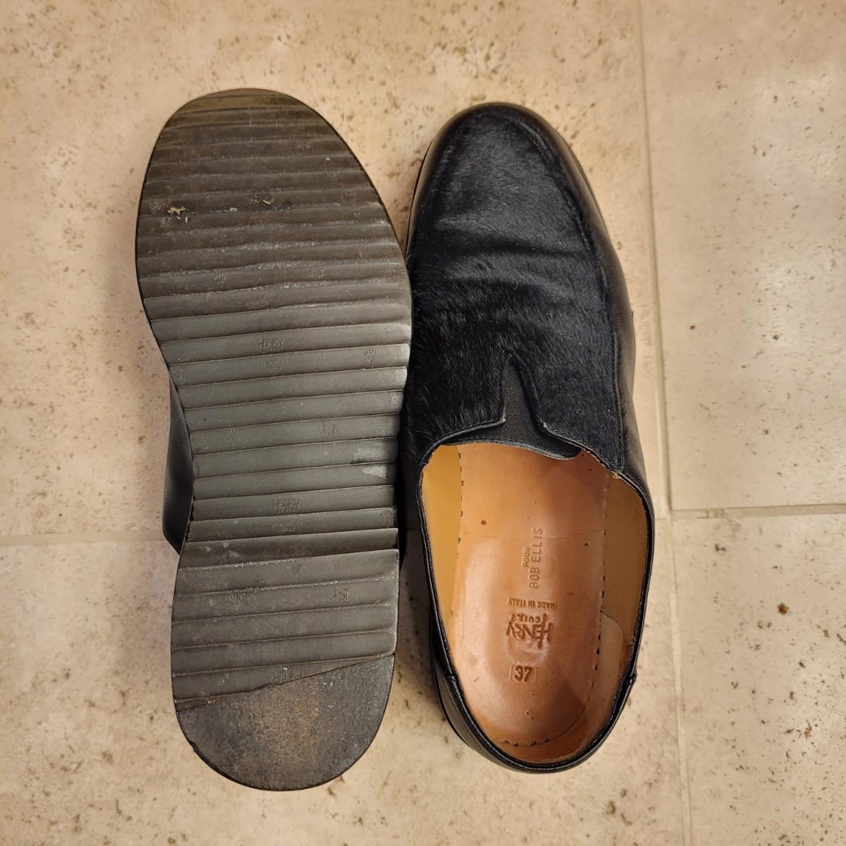 This lot includes three pairs of size 7 Stubbs & Wootton loafers, in addition to a pair of Charles Philip multicolored loafers and Henry Cuir fur top leather loafers. Dust bags included. Shipping available.