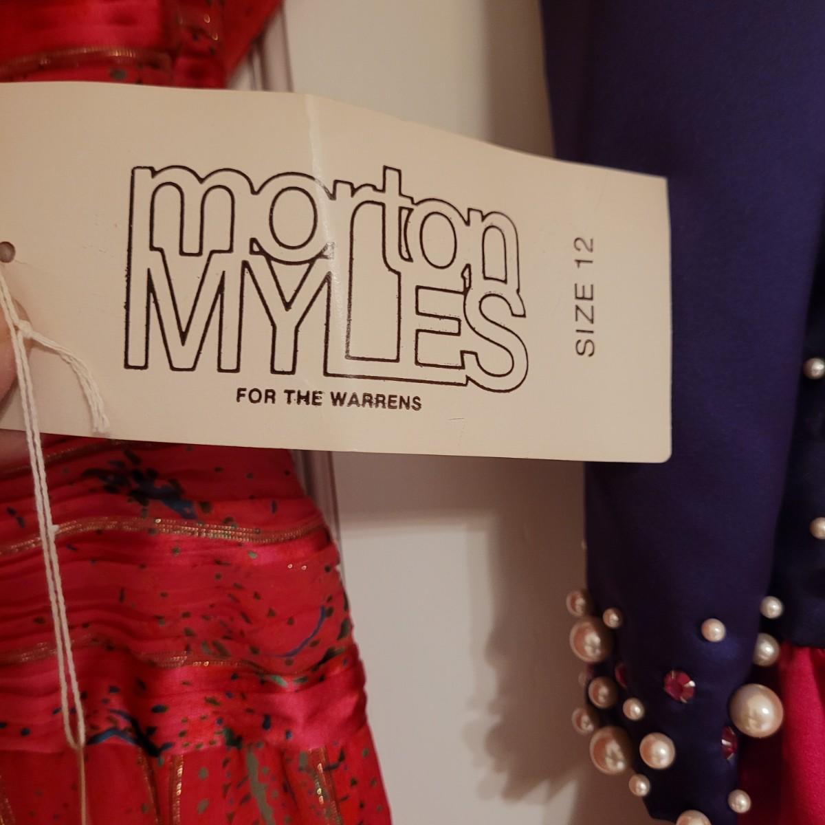 This lot of three vintage formal dresses includes a piece by fashion designer Morton Myles. Note that the colors in the photos may not be accurate. Sizes are 12/14. Shipping available.