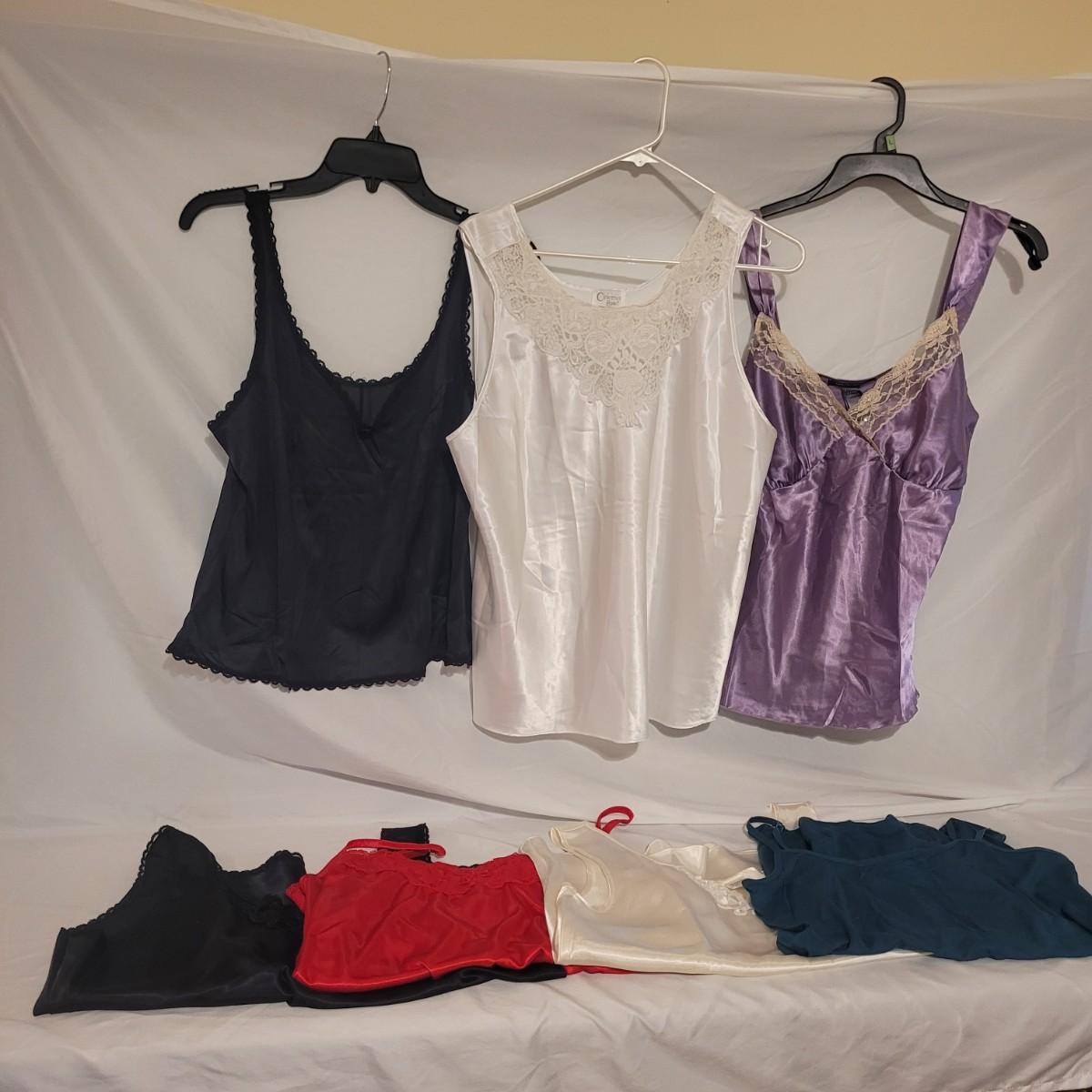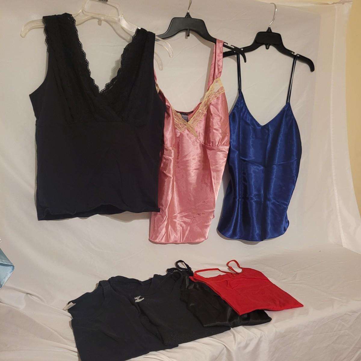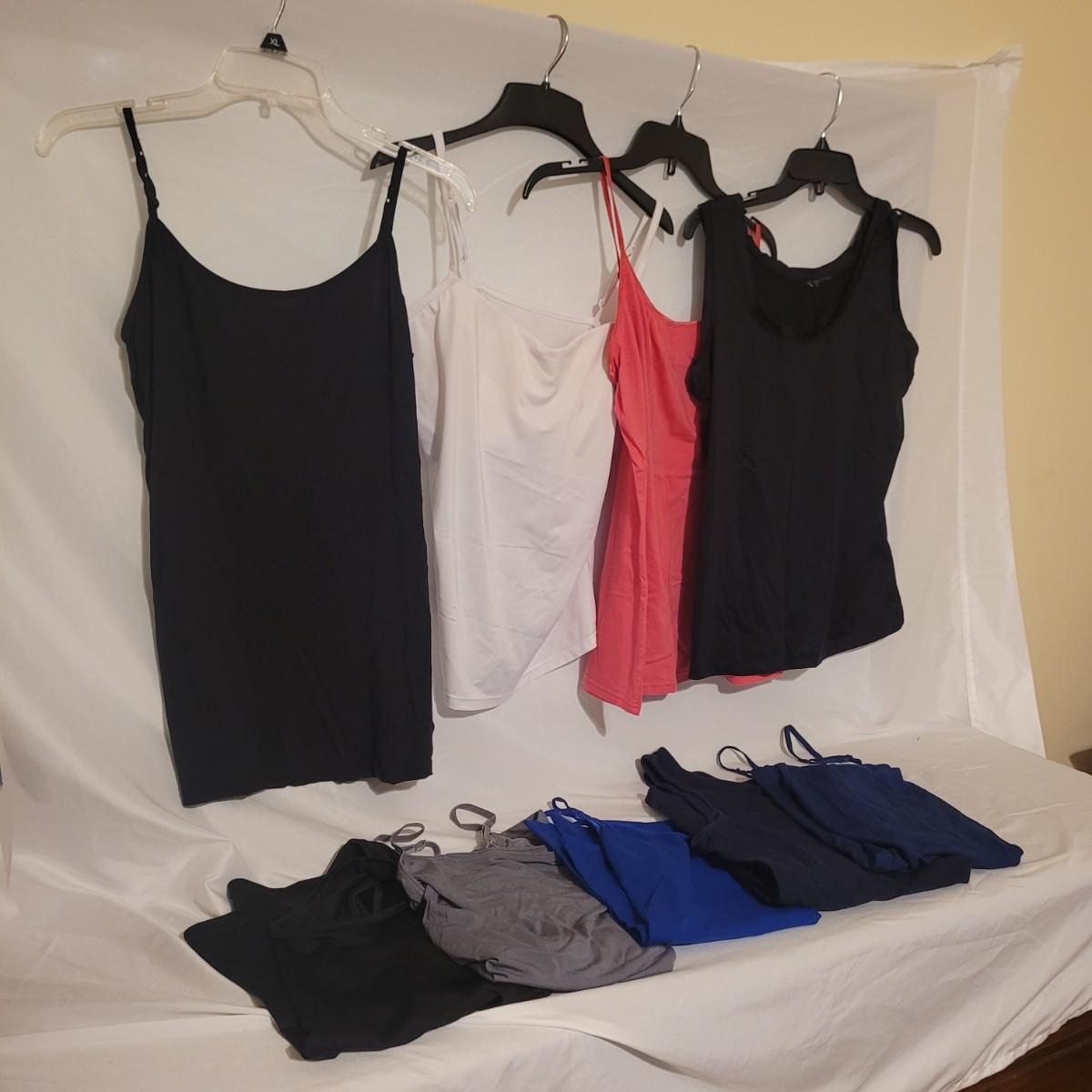 This large lot includes a variety of camisoles, spaghetti strap tanks, shelf bra tanks and much more. Shipping available.