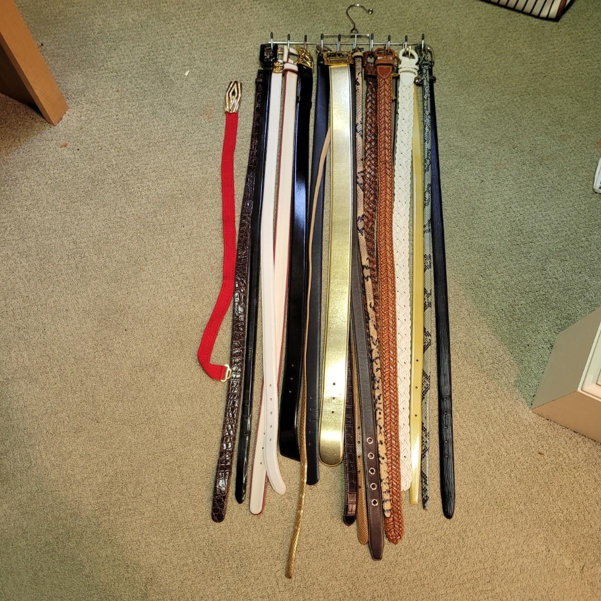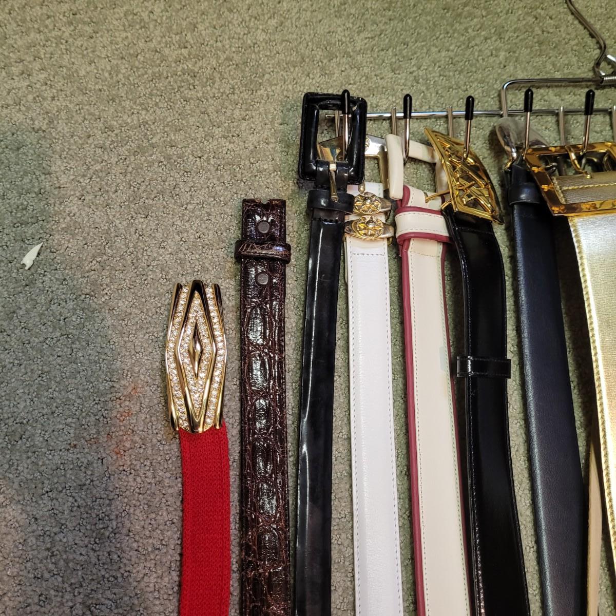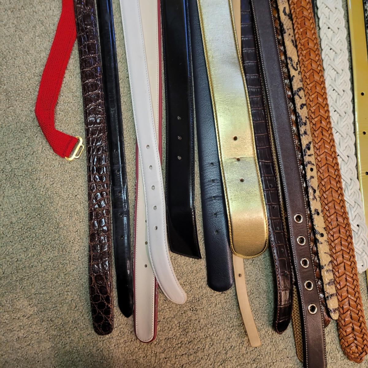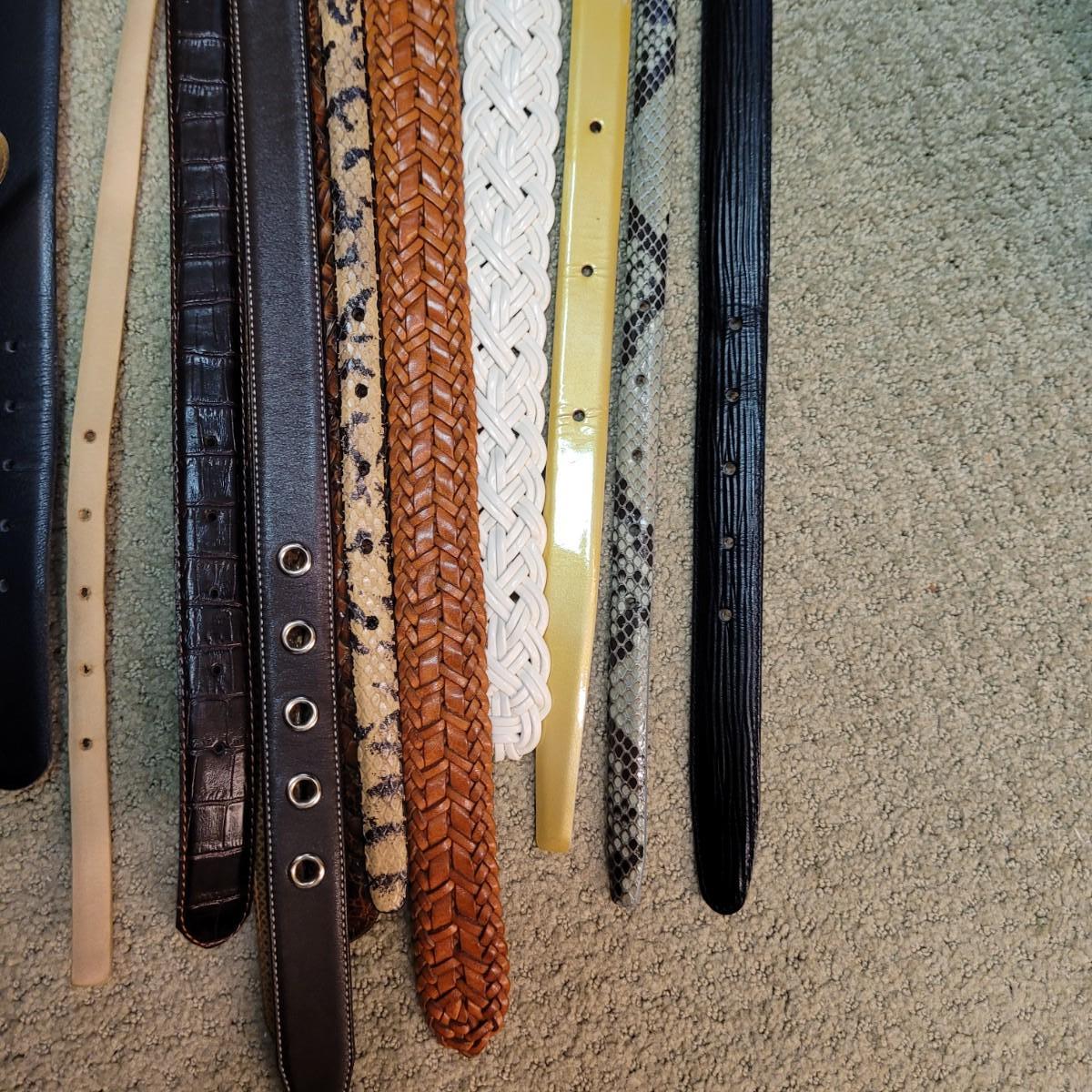 This large lot of twenty-one women’s belts includes a variety of styles and materials. Please see photos for inventory. Shipping available.