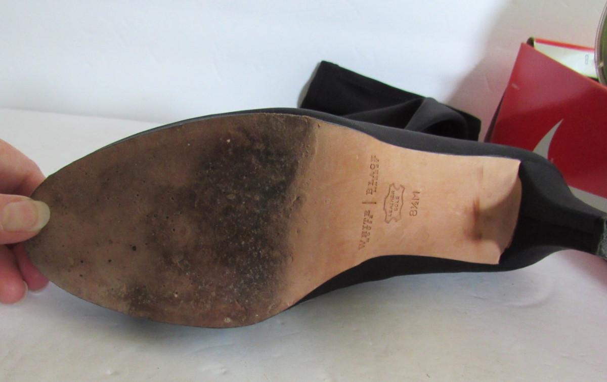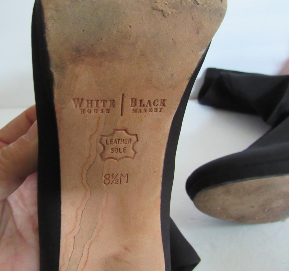 Good shape with minor wear. White House/Black Market, leather sole, 8 1/2M. Shipping is available at actual shipping cost plus $5.00 handling fee per box for supplies/labor. See our terms for details. All sales are final. Condition notes may not be all inclusive, we may miss some issues as most vintage items are not in mint condition and have some degree of wear, paint loss, etc, but we always try to note obvious damage.