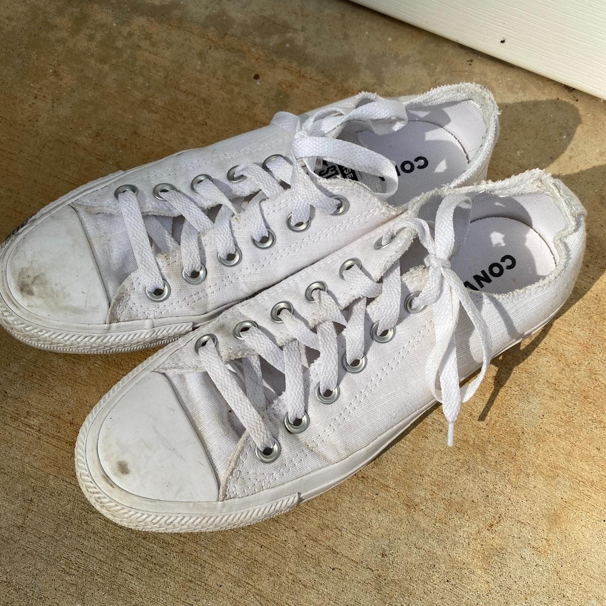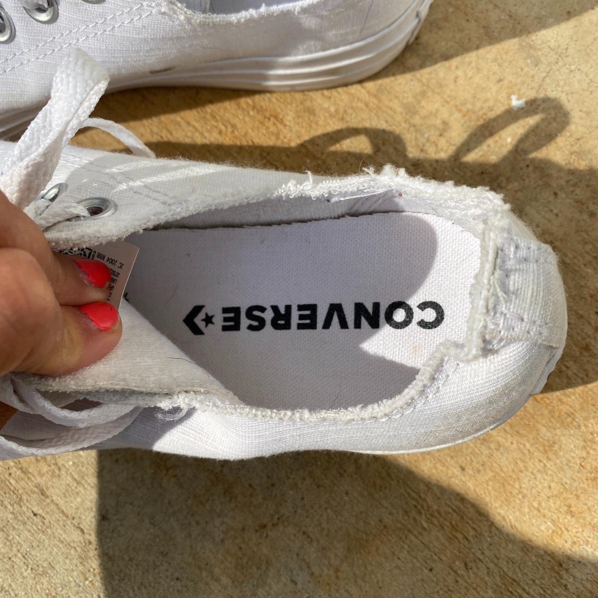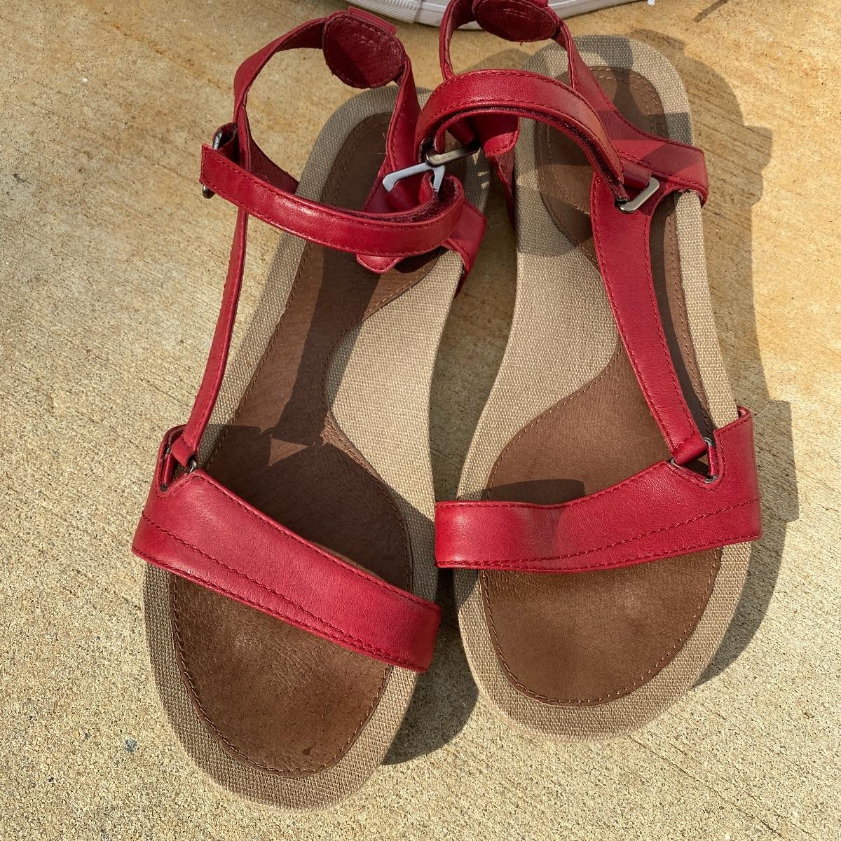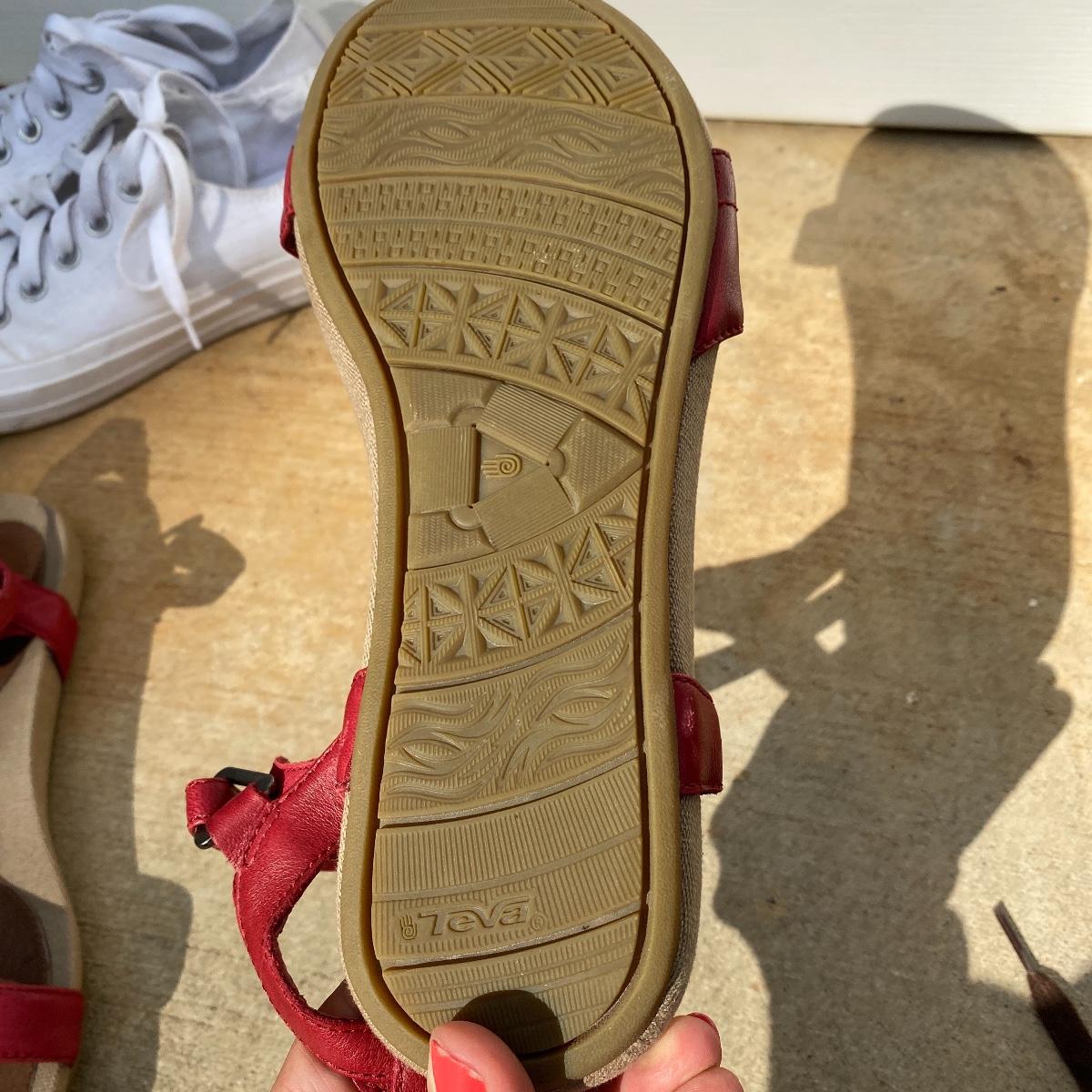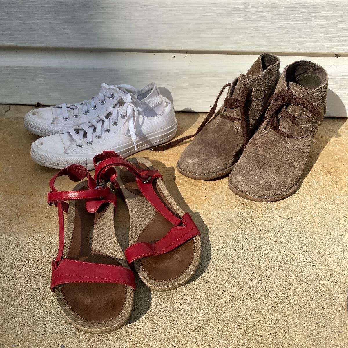 Three pairs of women’s shoes. Barry worn. Red sandals are actually a size 8.5 and are by Teva. The other two are size 8. Converse have some scuff marks. Shipping available.