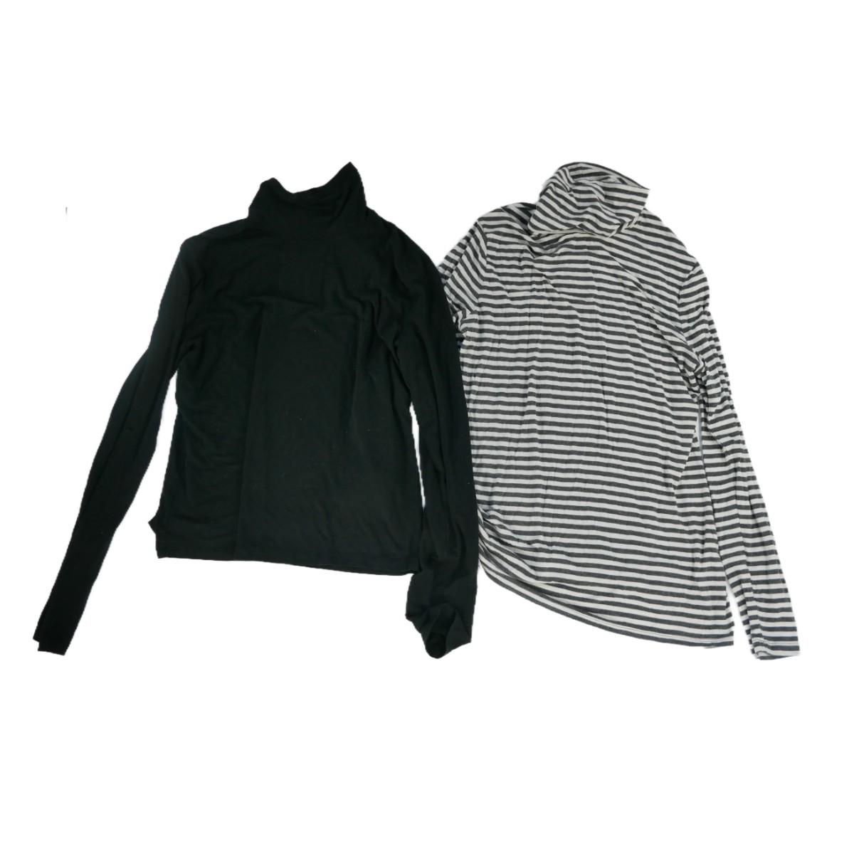 Black Isaac Mizrahi (small hole in arm) and grey striped Banana Republic turtlenecks in women's size L.