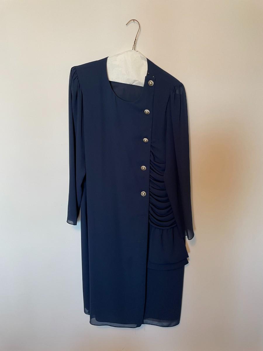 Vintage navy blue dress with button detail. Likely Size 12 -14