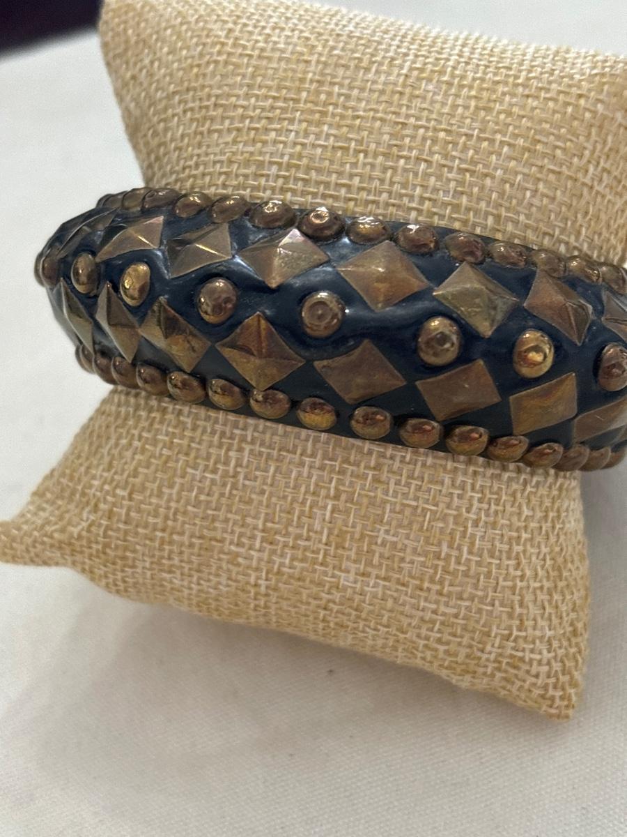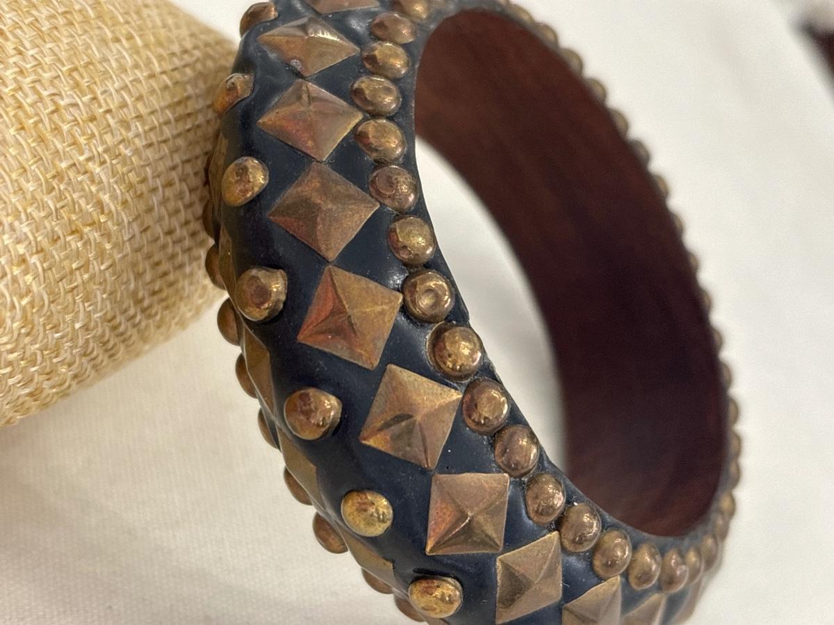 Women’s Wood bangle bracelet with bronze studs
