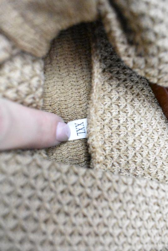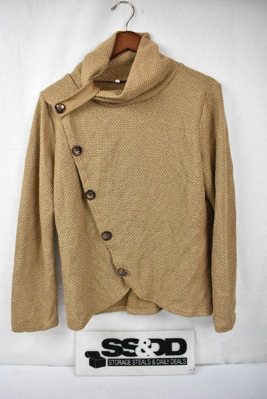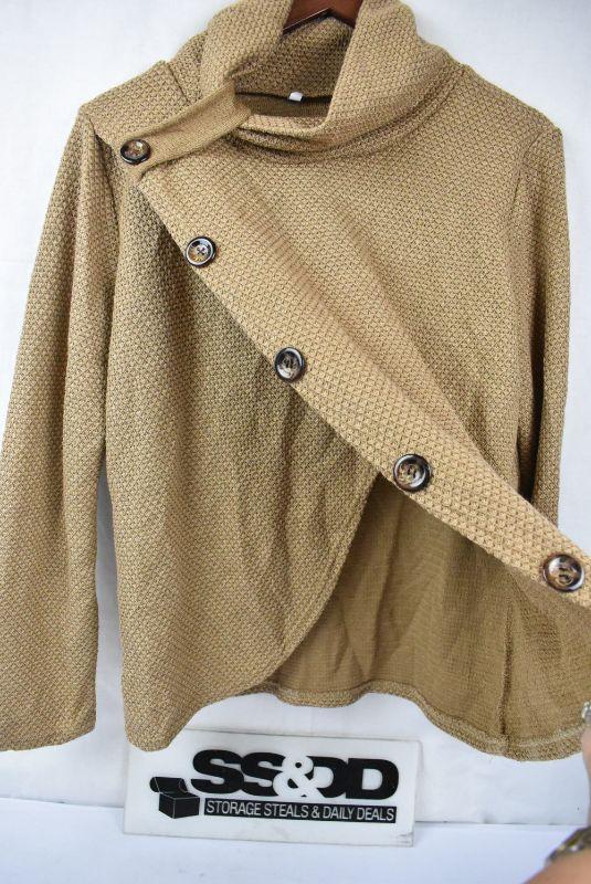 Women's XXL Light Brown Wrap Sweater with Brown Buttons