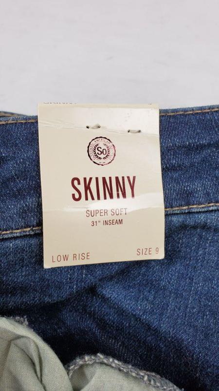 Womens/JR Size 9 Skinny Jeans, SO, Super Soft 31" Inseam, Low Rise - New