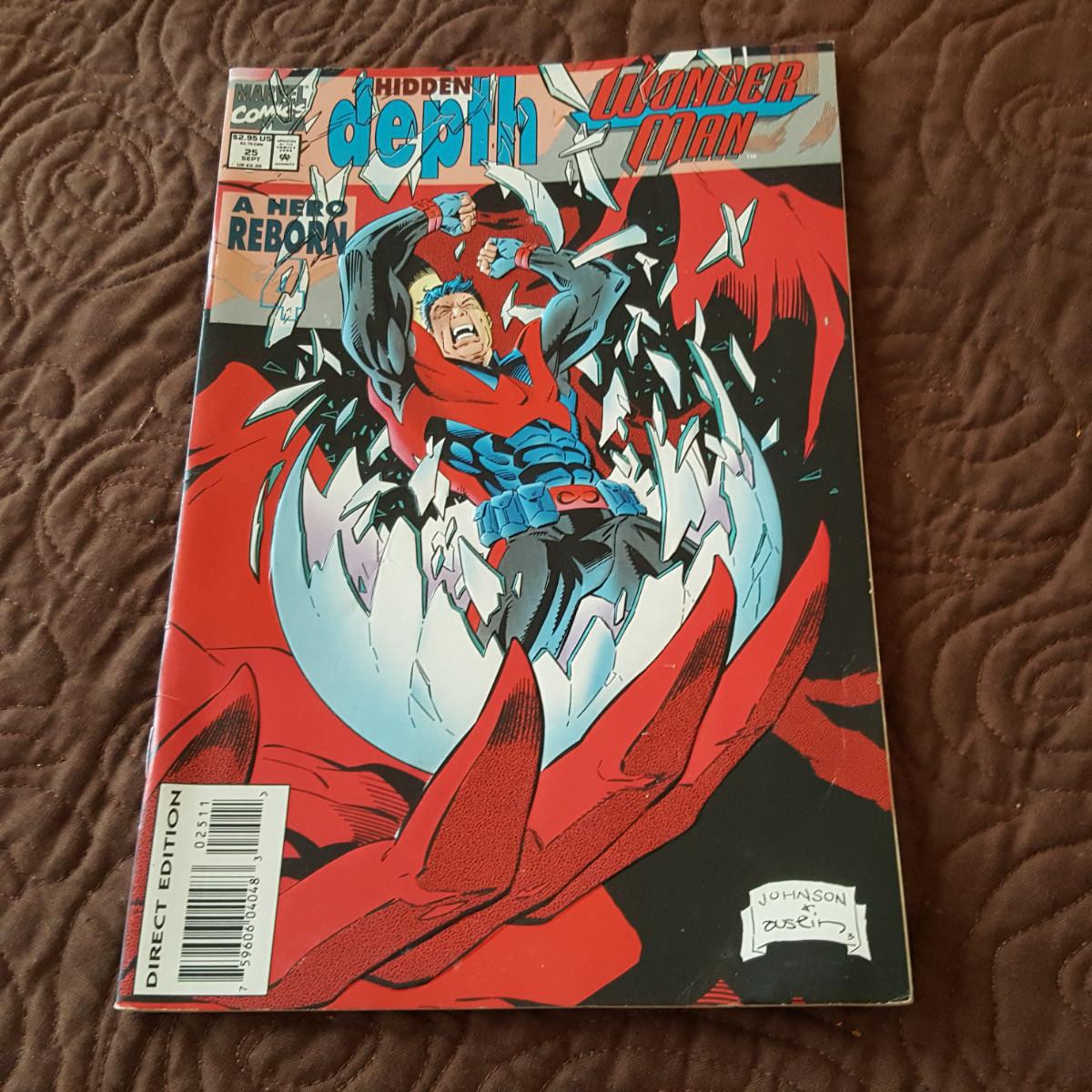 This auction lot is for a Wonder Man Marvel Comic. Hidden Depth - Direct Edition. The comic has an embossed/raised cover and is in good condition. This is a Volume 1, No. 25. dated September 1993.