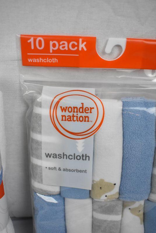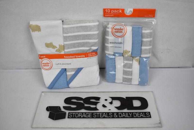 Wonder Nation Baby Blue Hooded Towel and Washcloth Set, 12-Piece - New