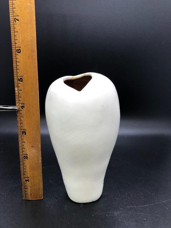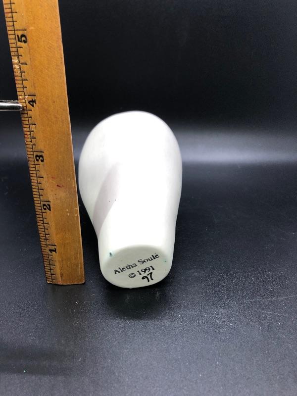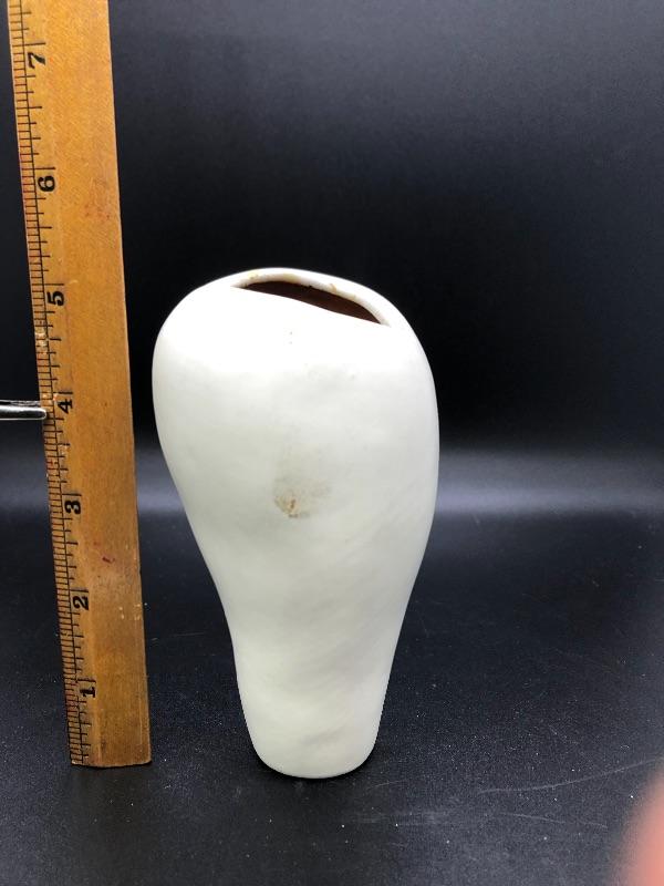Nice Moderist, free-form organic vase made by Aletha Soule in very good condition. No chips or cracks. The rare design is 5 inches tall and white. #499a57