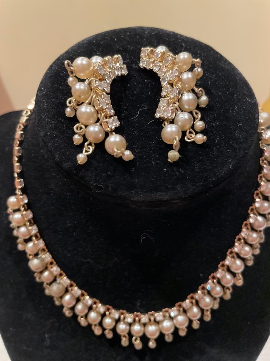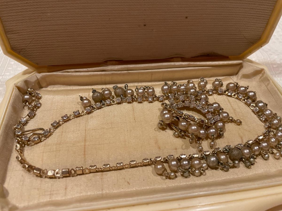 Wonderful faux pearl and rhinestone set with 3 bracelets