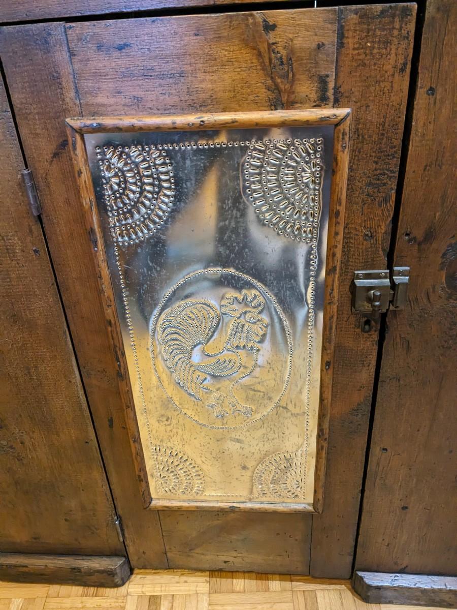 Rooster punched tin door