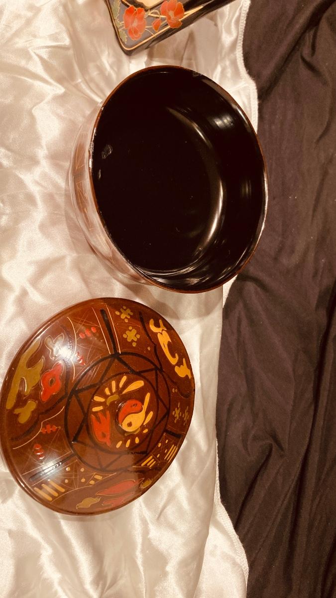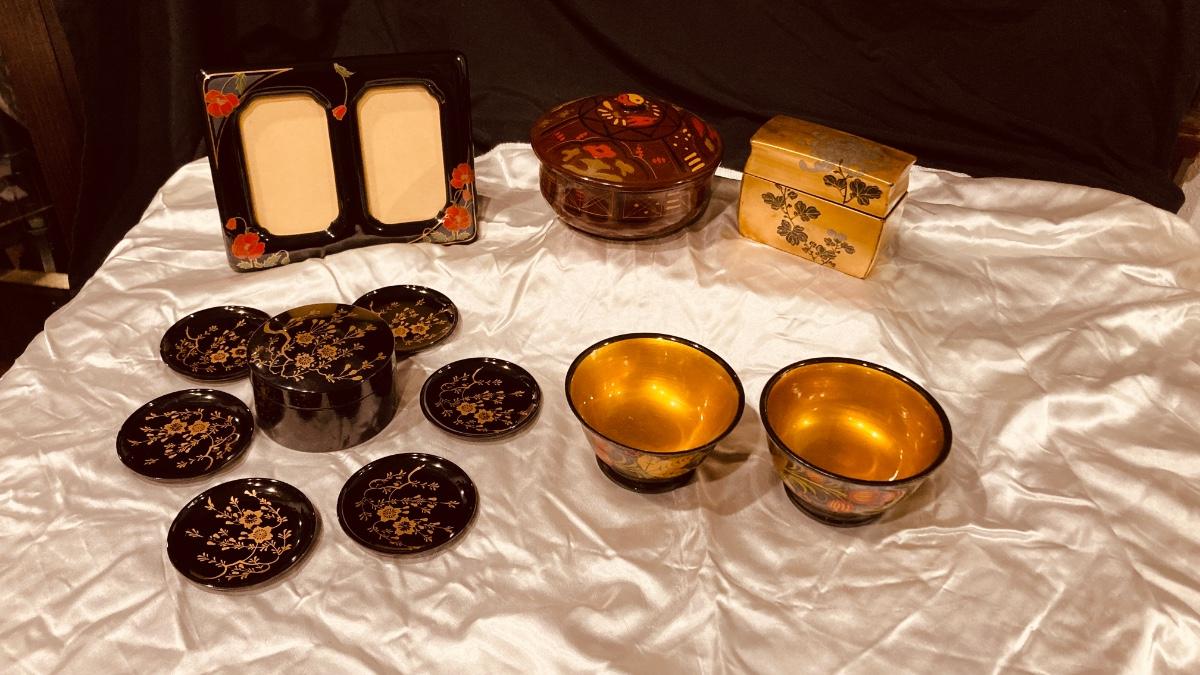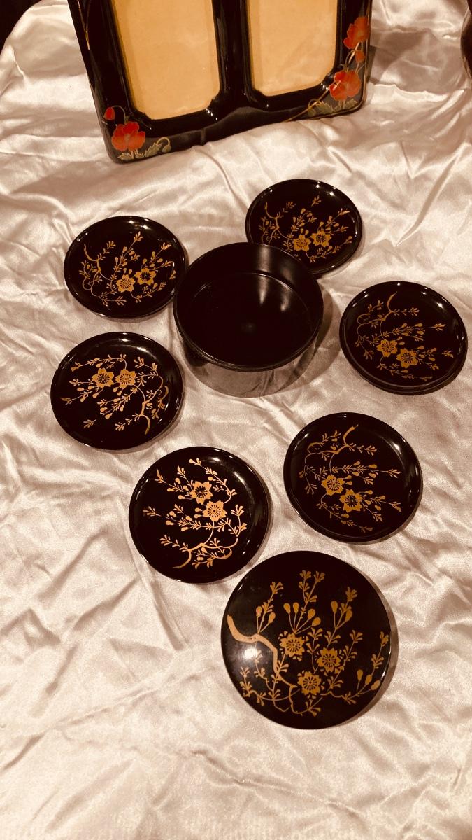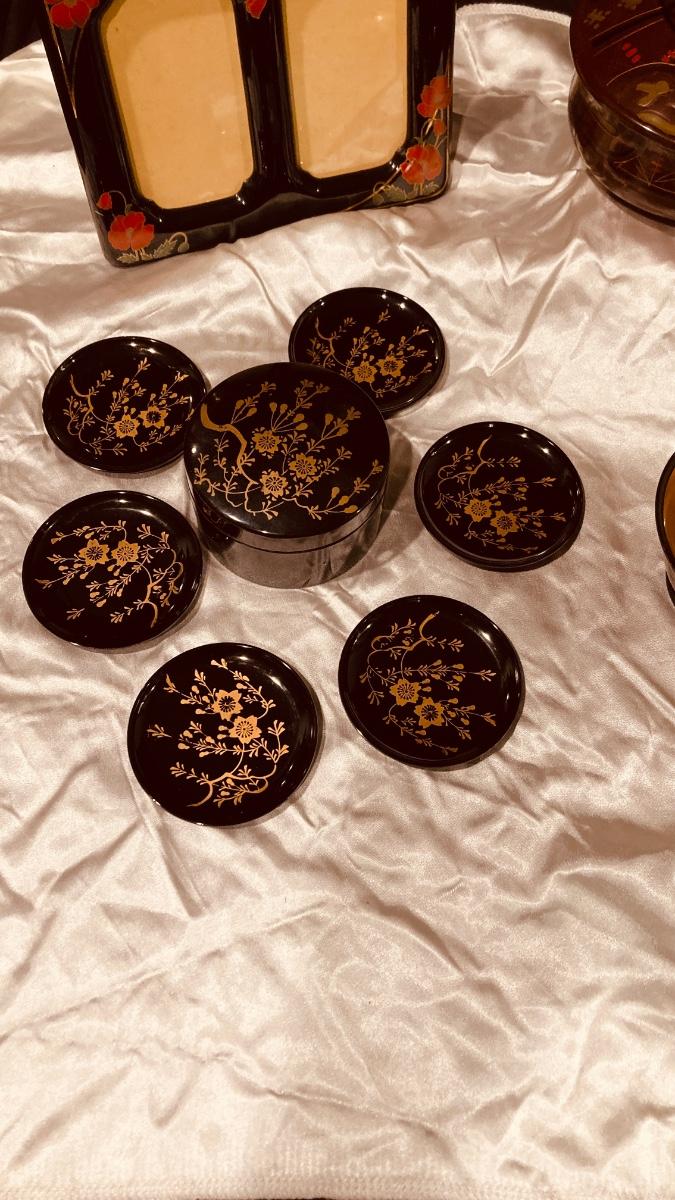 Rice bowl, coasters, organizer box, picture frame, and bowls, all beautifully hand-painted.