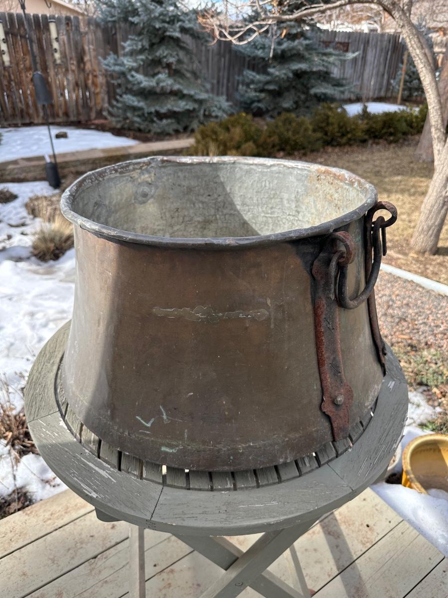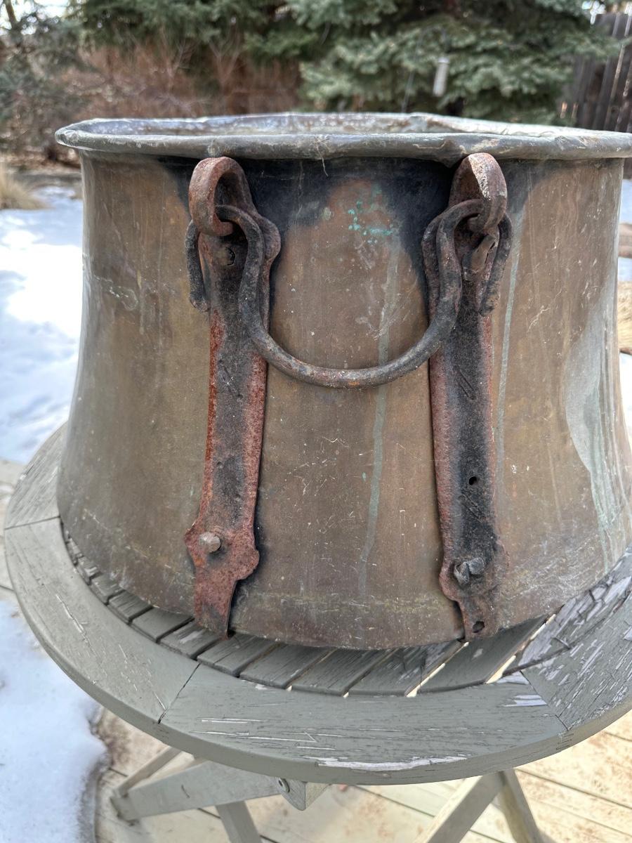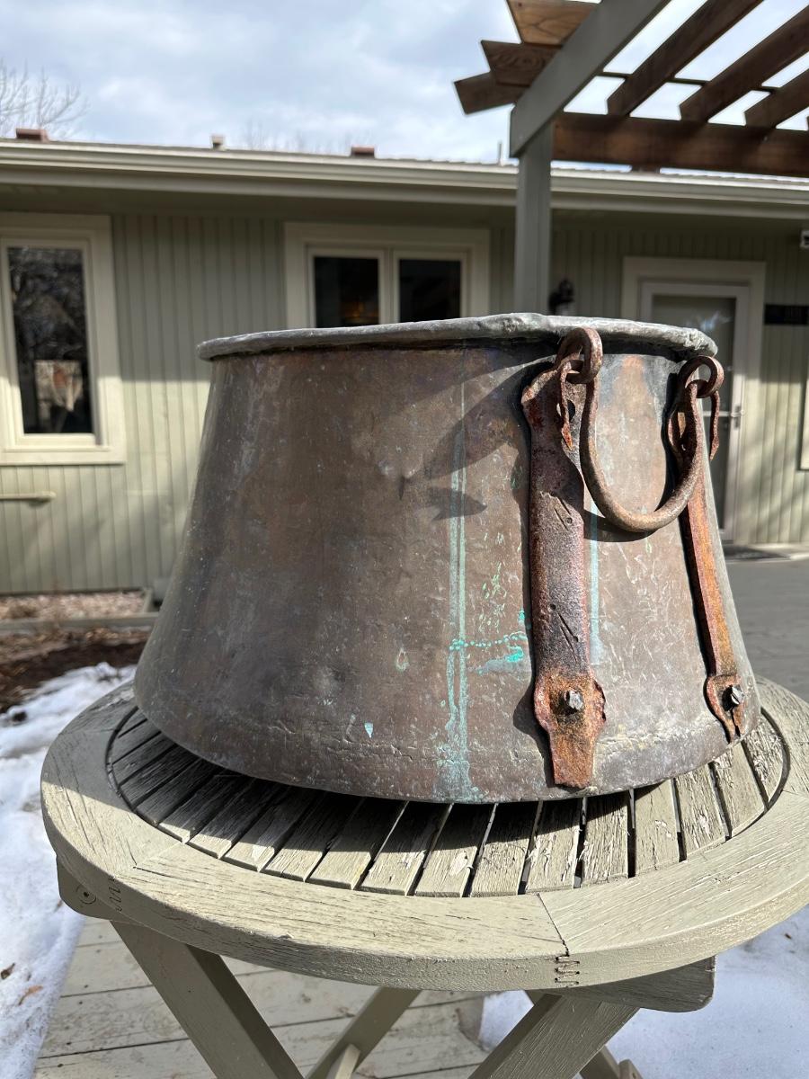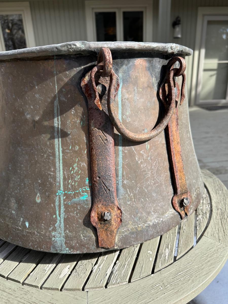 WONDERFUL LARGE COPPER CAULDRON WITH IRON HANDLES