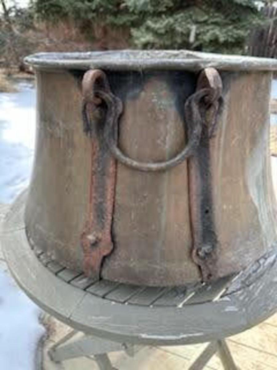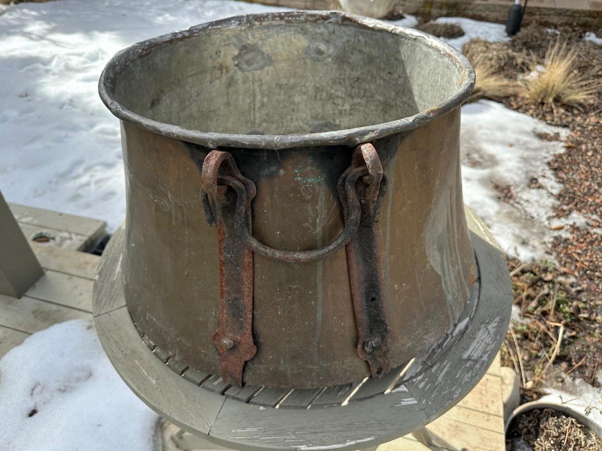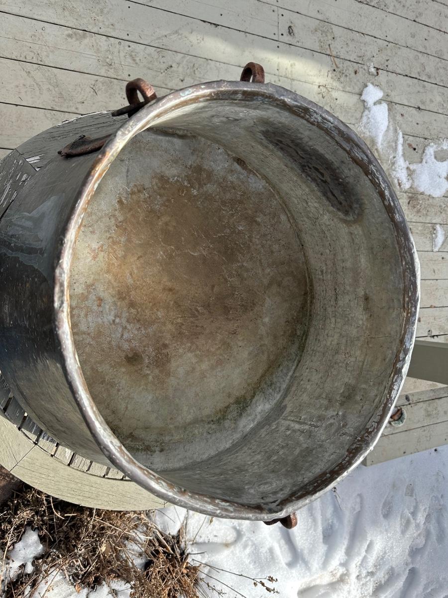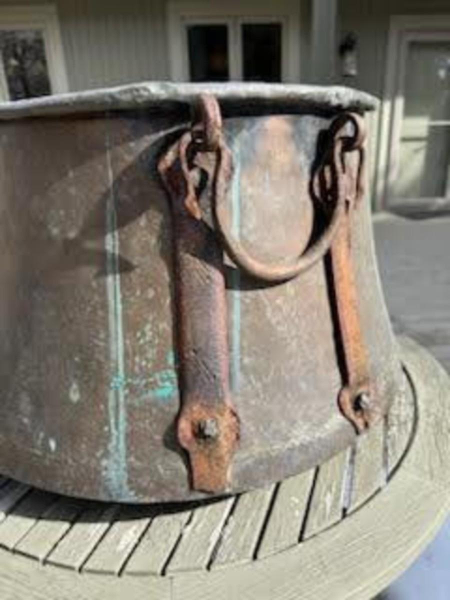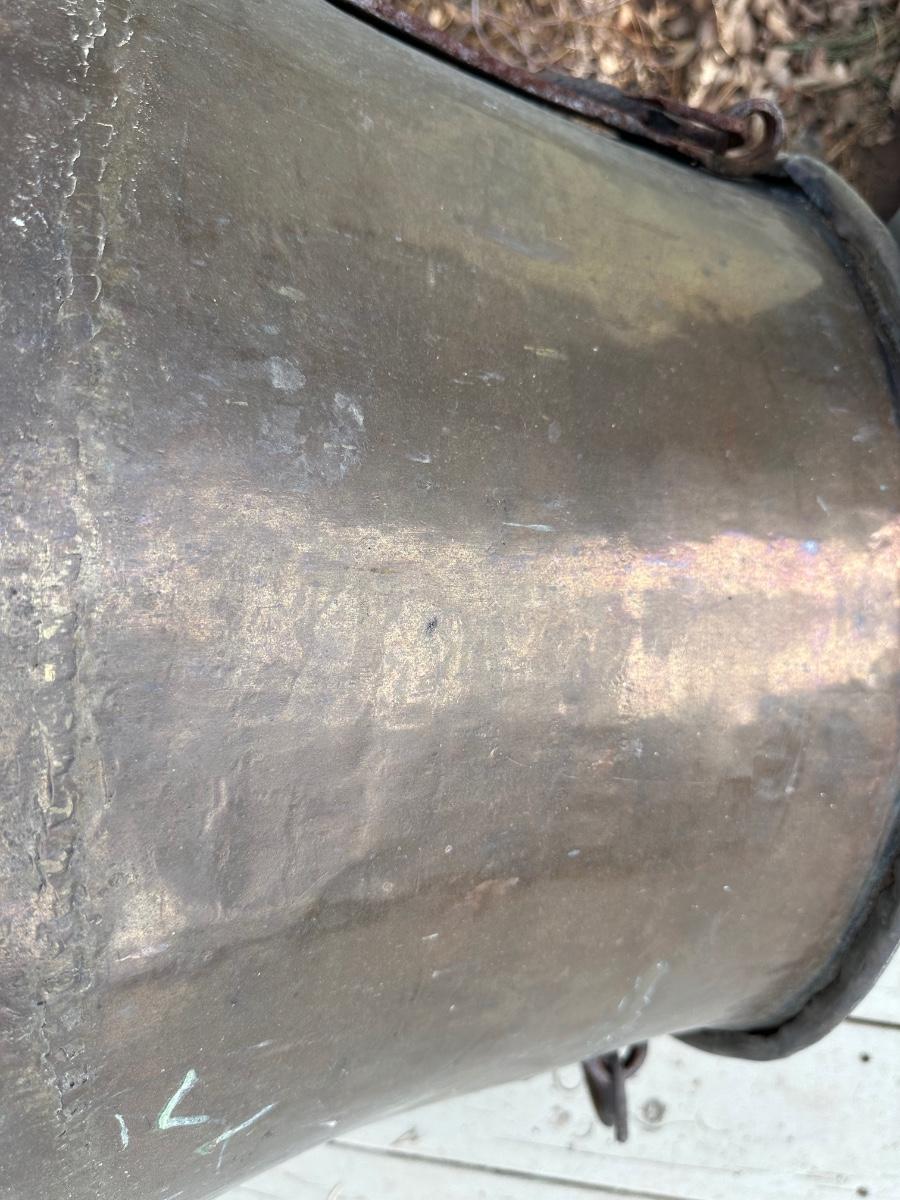 WONDERFUL LARGE COPPER CAULDRON WITH IRON HANDLES