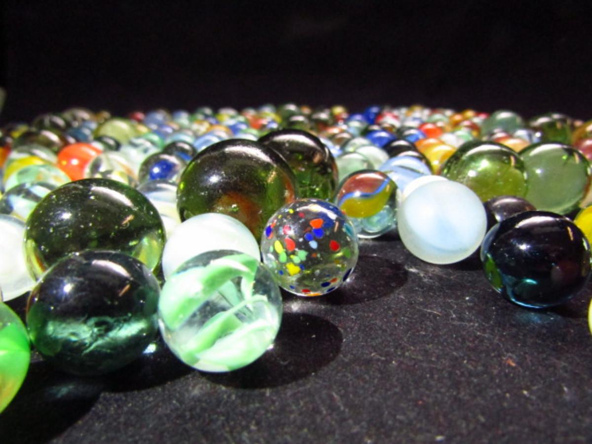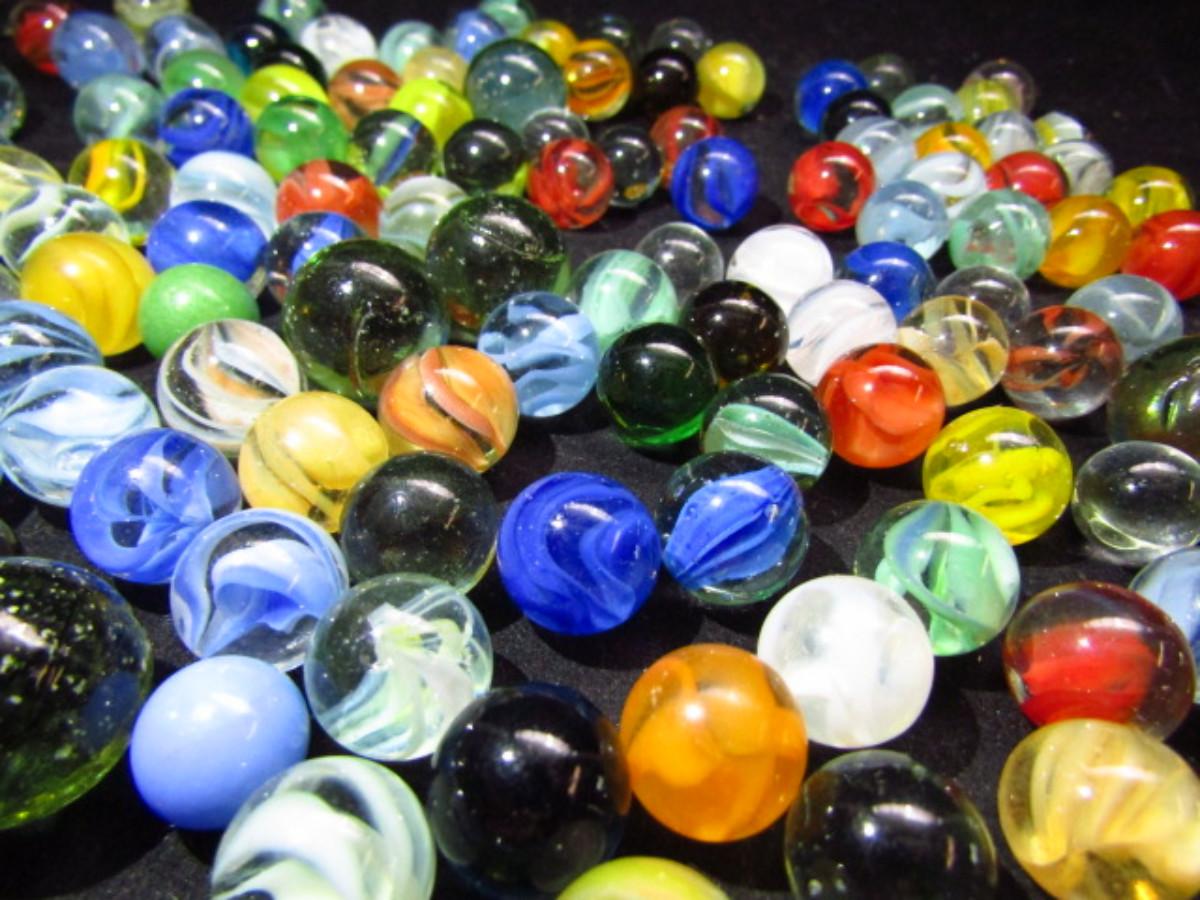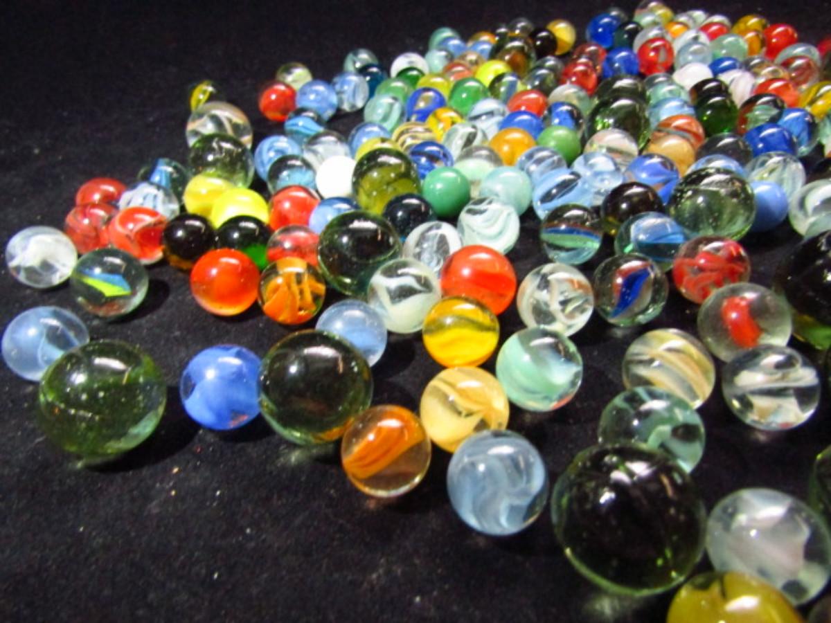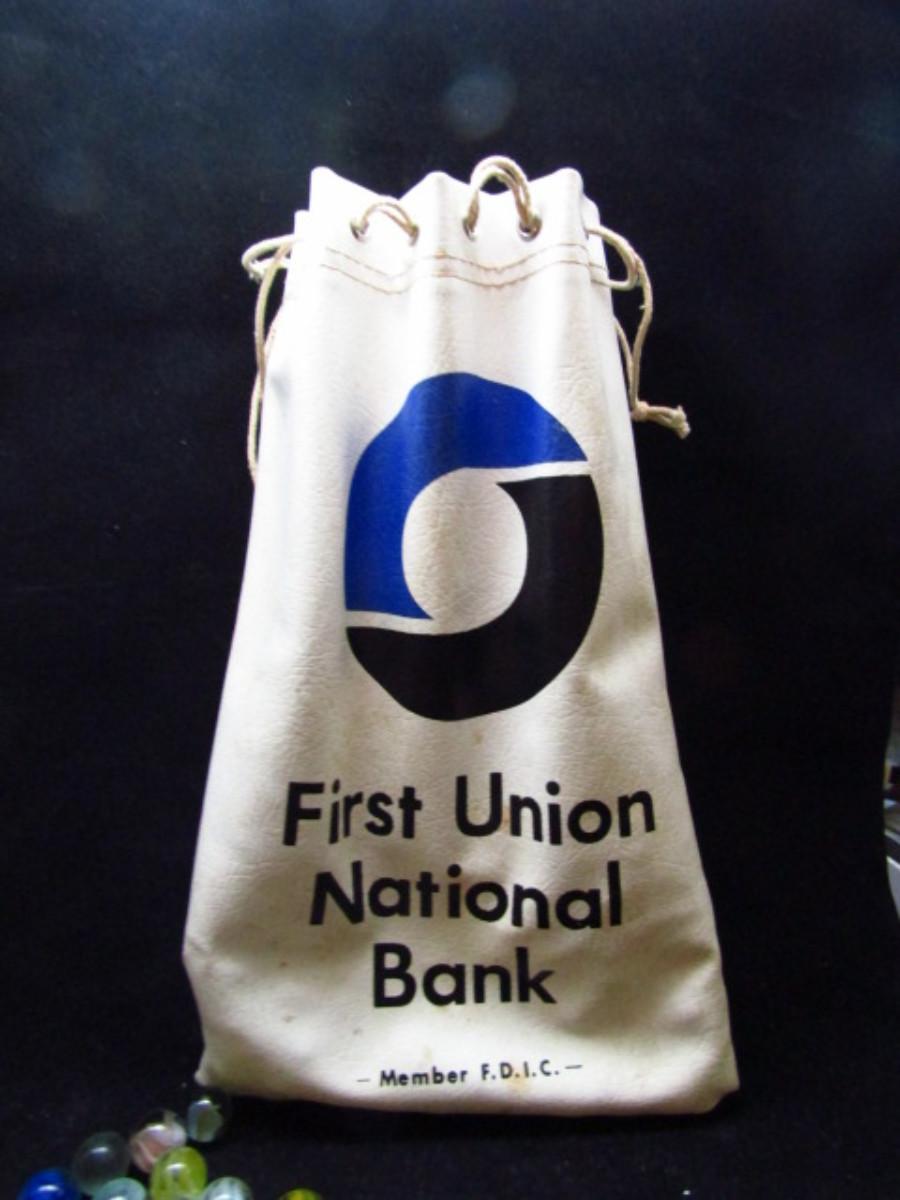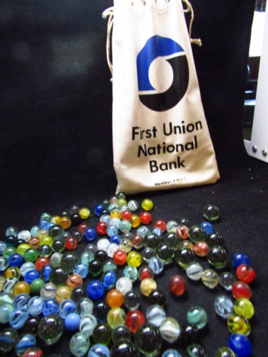 Wonderful Selection of Marbles in Vintage Vinyl First Union National Bank Bag (#535)