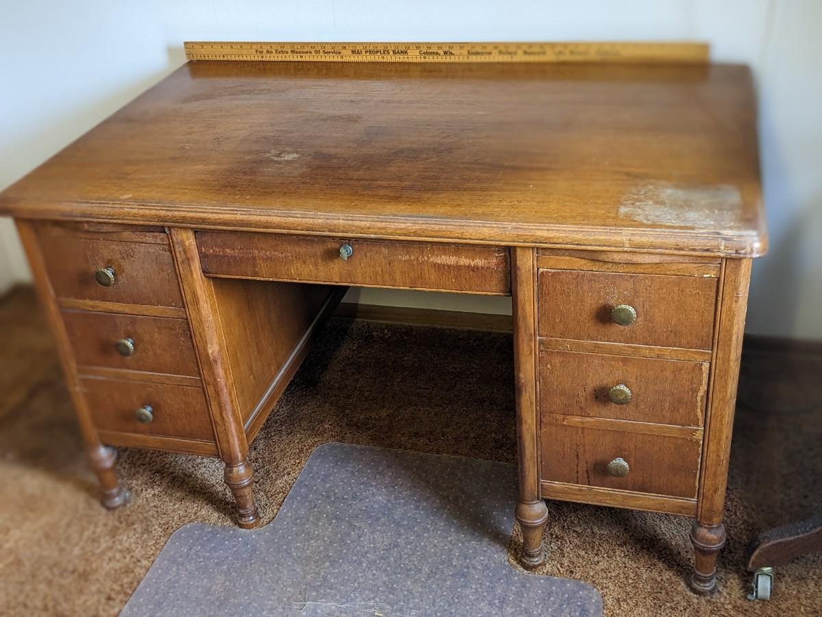 Wonderful, Well Built Oak Desk, Key and Drawers Work Great