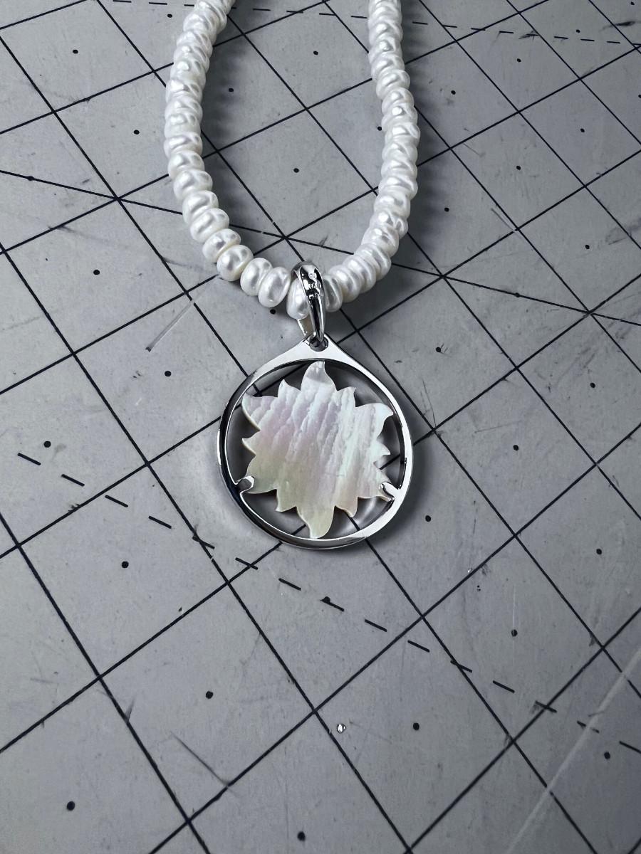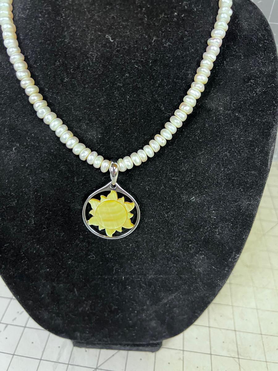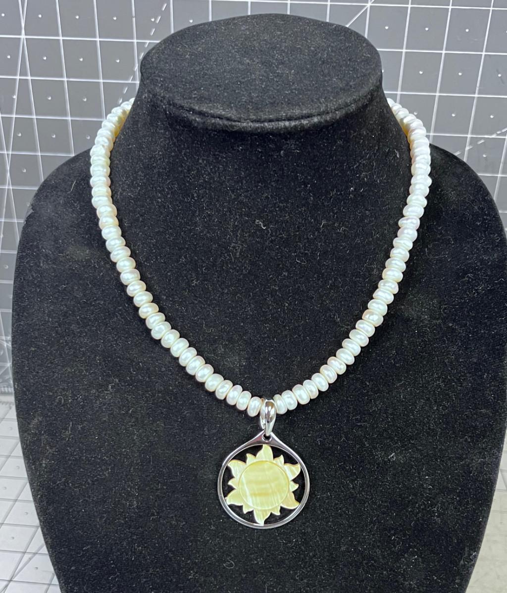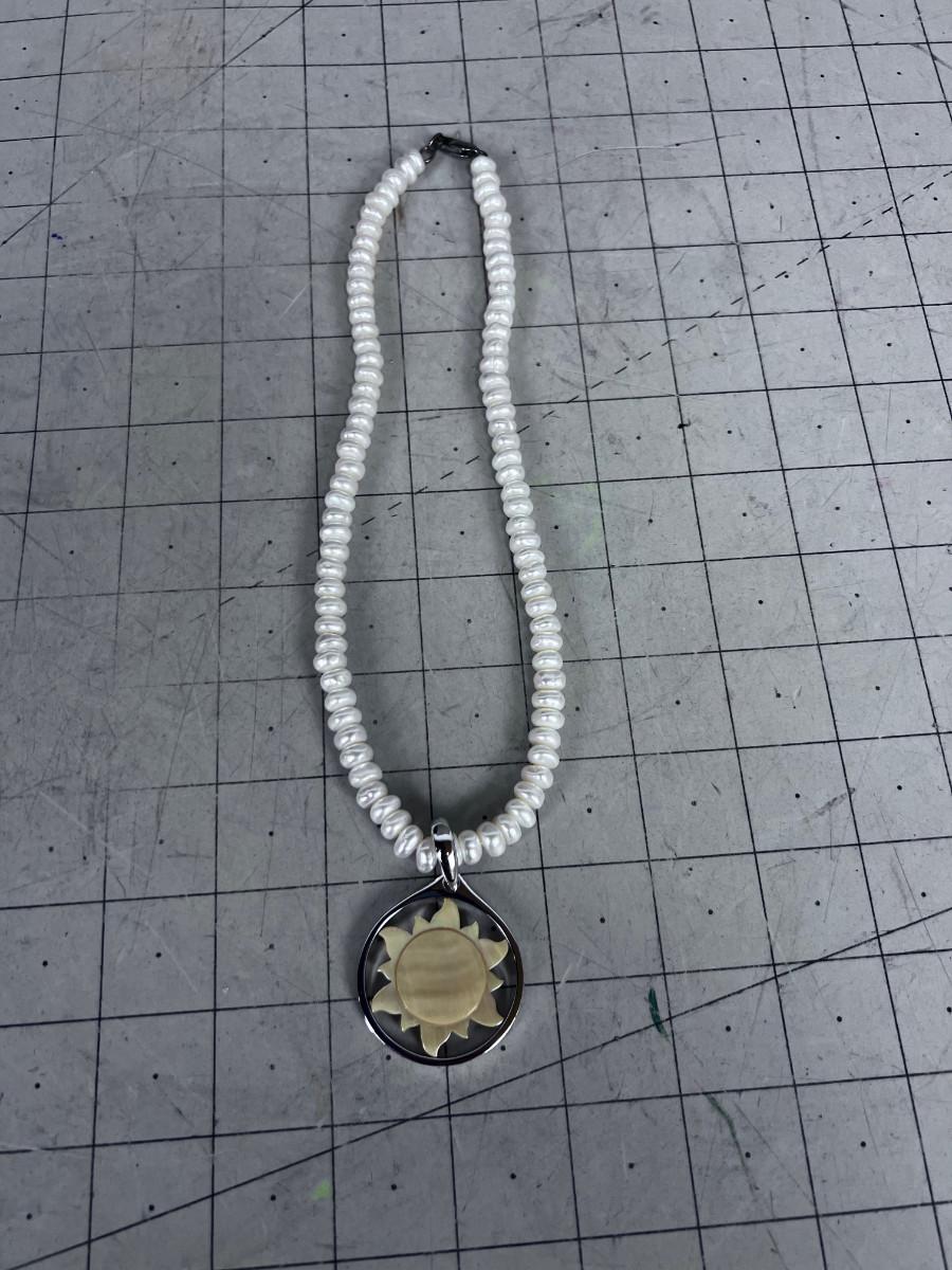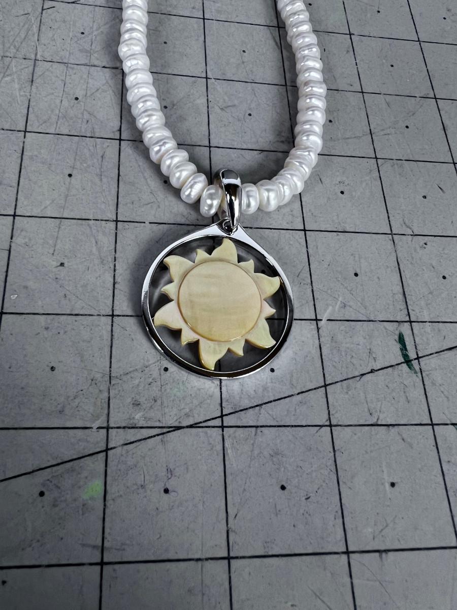 Wonderful White Pearl Necklace with Shell Carved SUN
