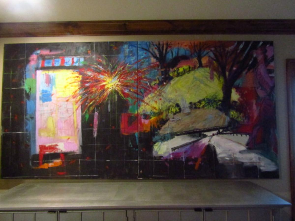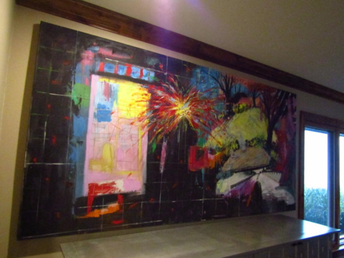 Wonderfully Colorful Art Display- Approx 96" x 48". Painted Canvas on Wood Frame