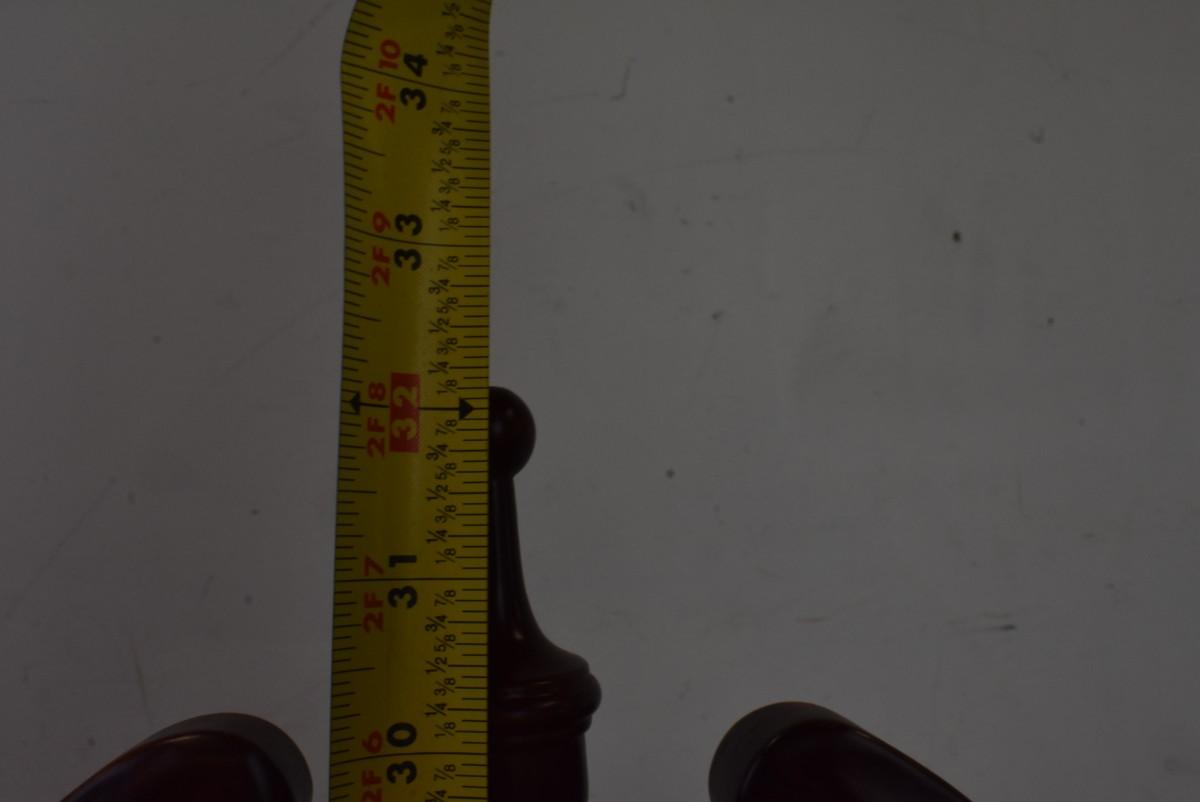 Wood 32 in tall working Grandfather clock w/key, hanging, mahogany colored wood
