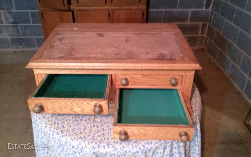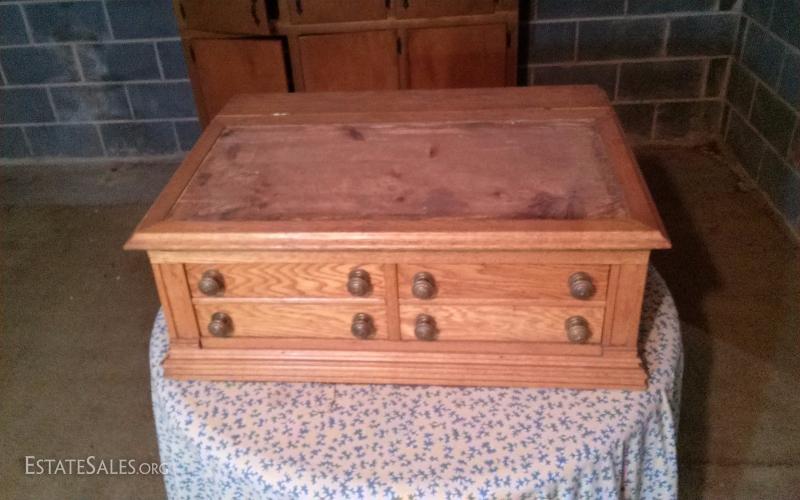 Wood 4 Drawer Lined Cabinet 30"x22"x12" Inlay is missing