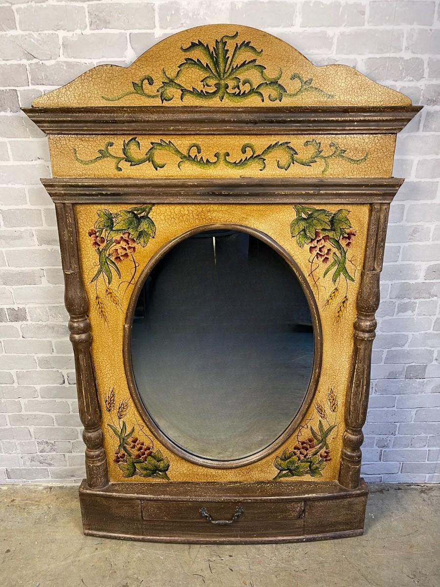 Wood Accent Mirror with Drawer & Crackle Finish. 36" wide x 57 1/2" high x 3" deep. # 1523