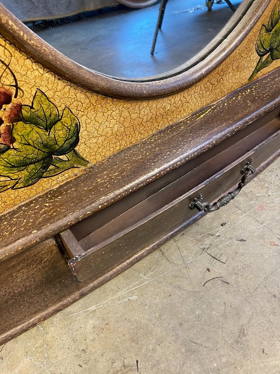 Wood Accent Mirror with Drawer & Crackle Finish