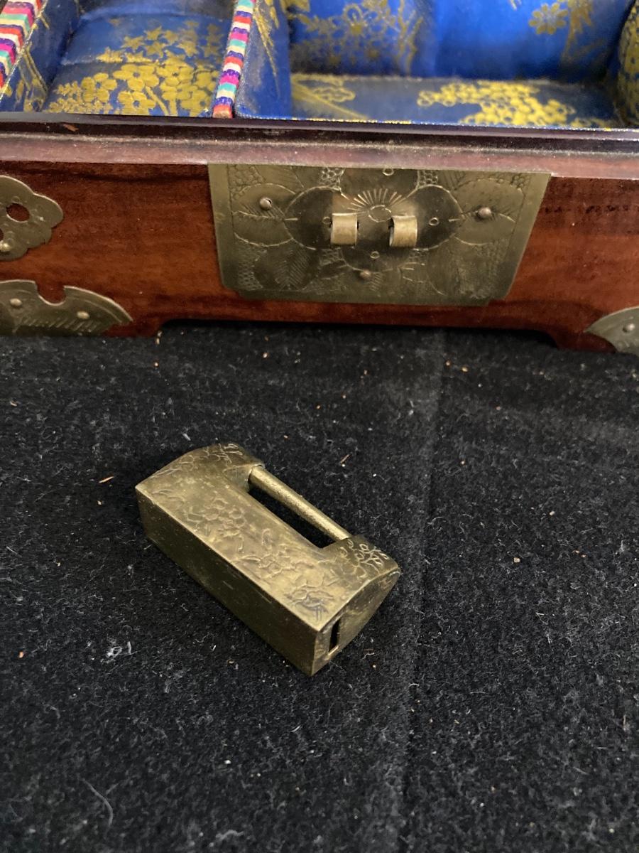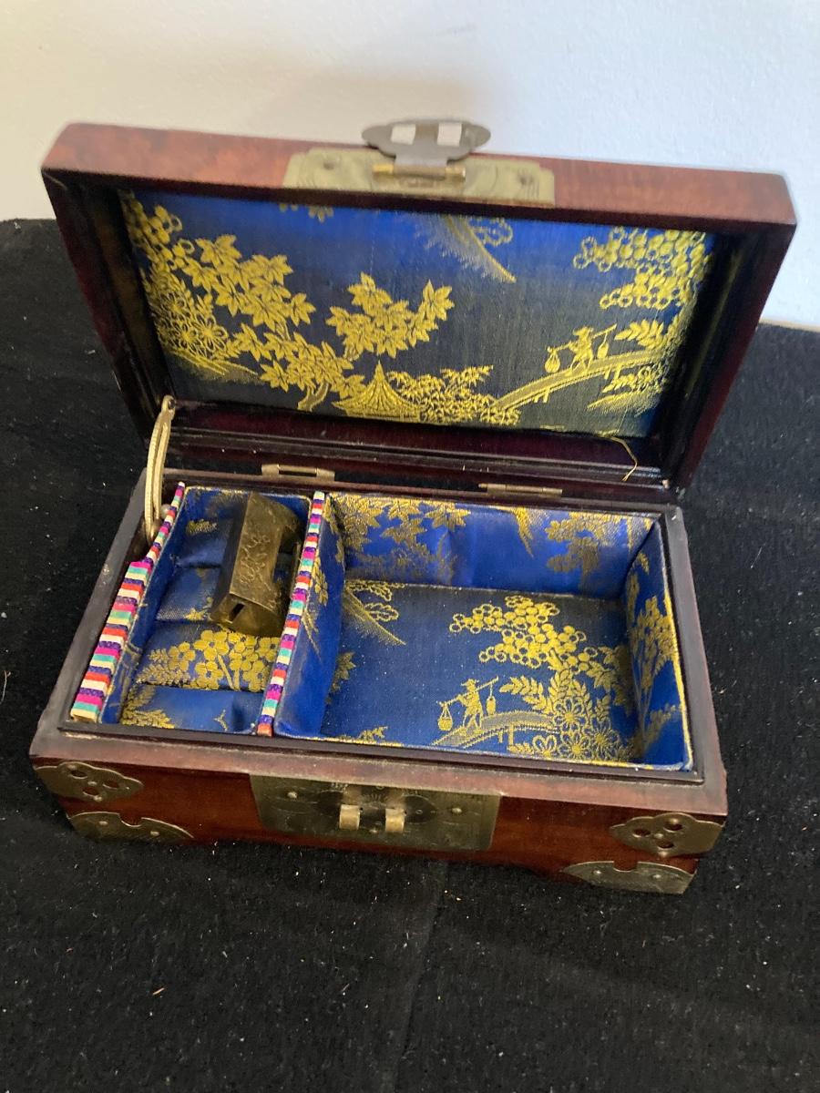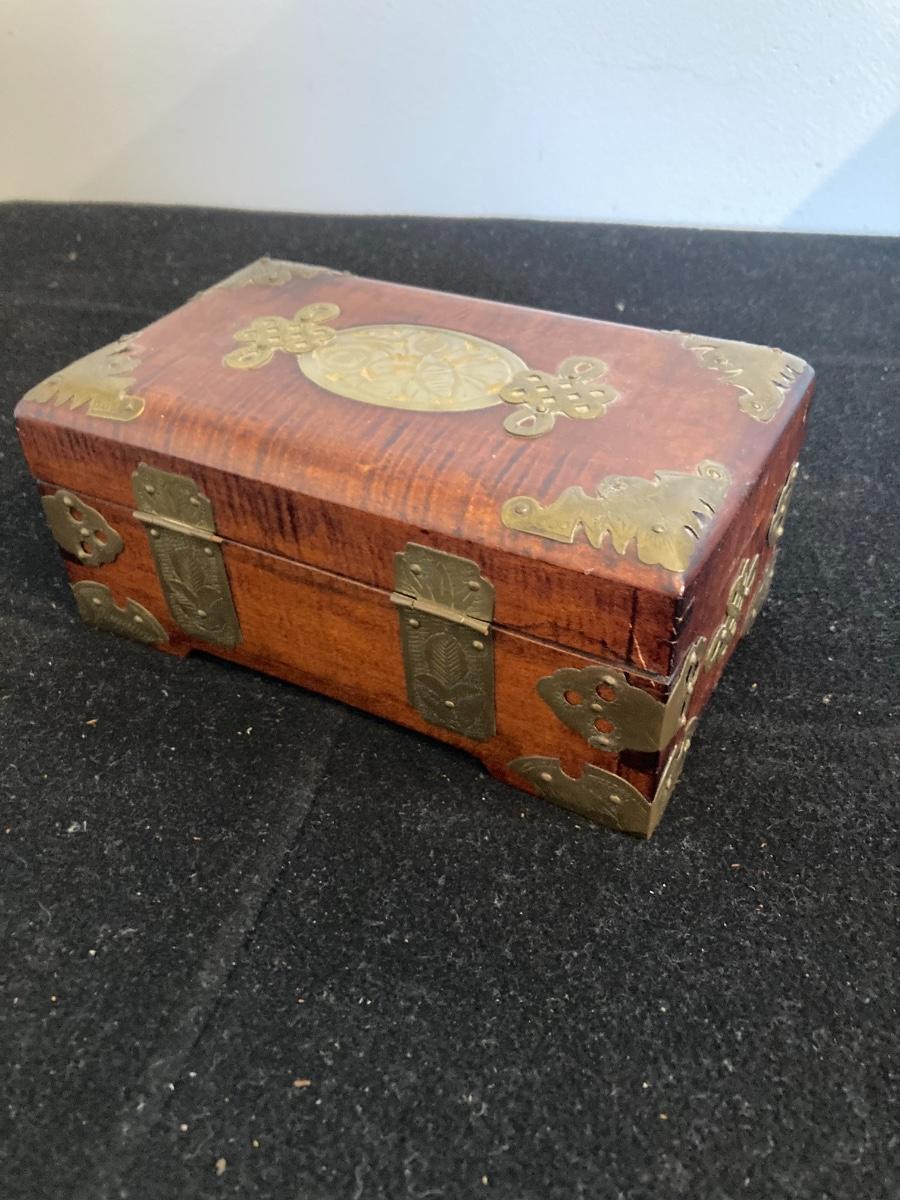 Wood and Brass Jewelry Box with Jade Top and Lock 6.5”w x 4”d