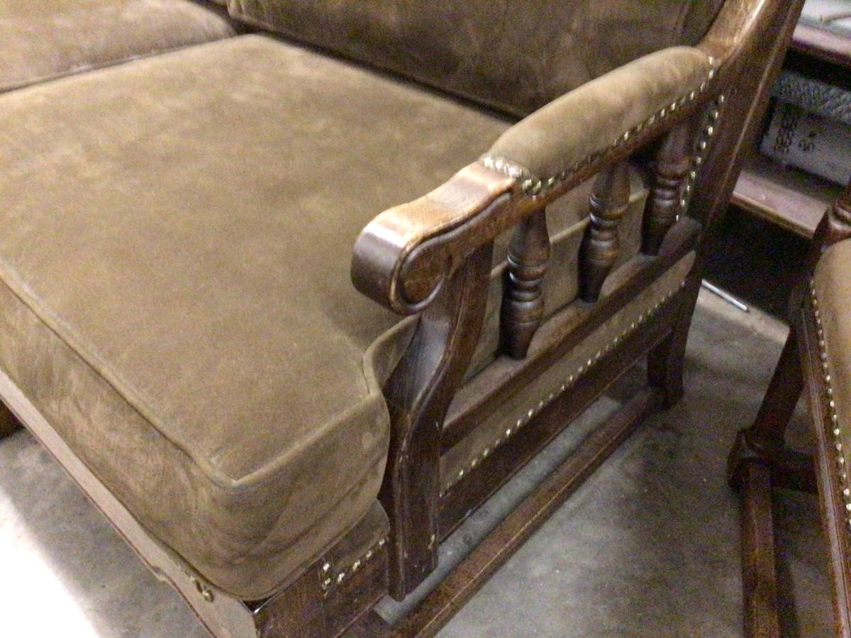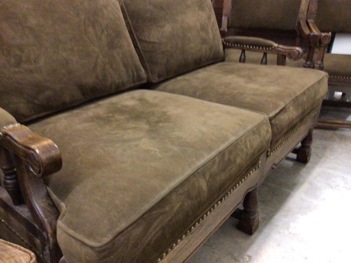 Nice brown velvet couch / love seat with wood framed and brass tacks. It is in great condition looks like it was never sat on. Very sturdy and has a great look.