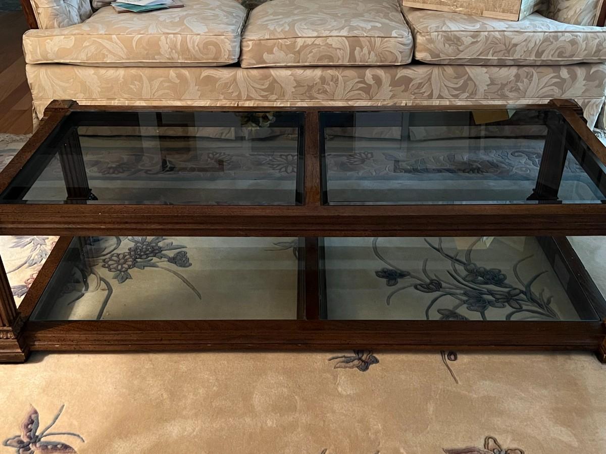 Wood and Glass Coffee Table 57.5" x 26.5" x 15.5"