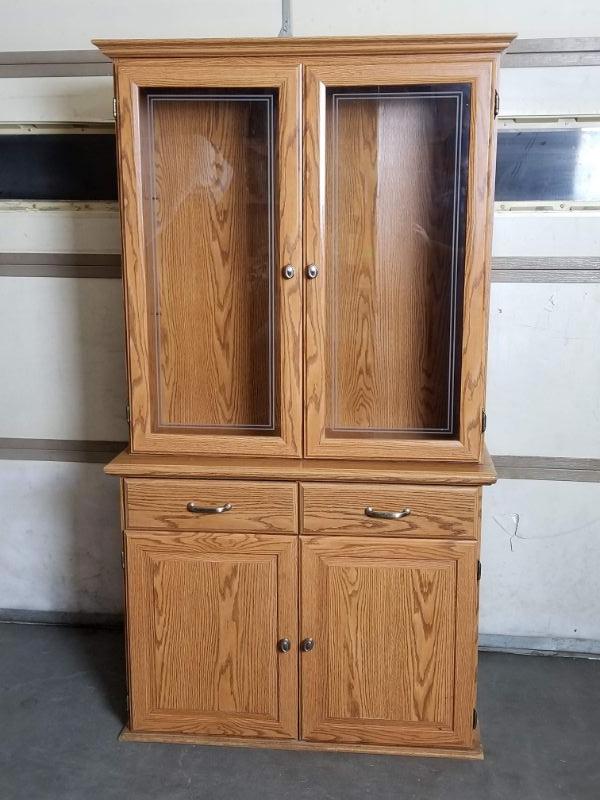 Wood and Glass Hutch, In Great Condition EXCEPT Missing Upper Shelves