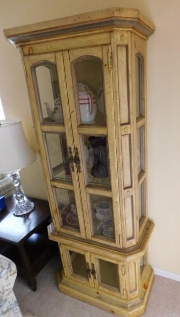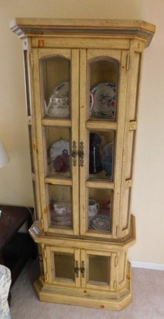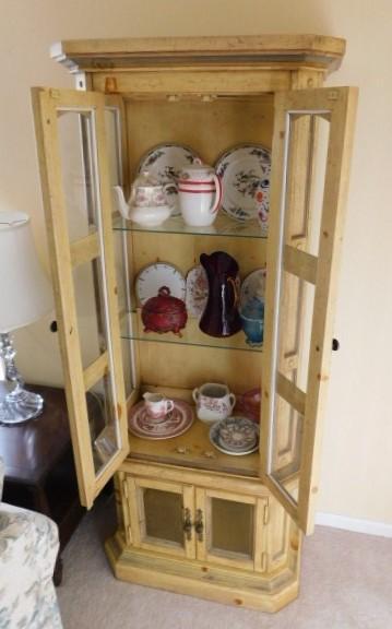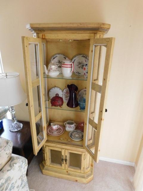 Wood and Glass Lighted Curio Cabinet 30"x16"x72" has glass shelves...in very good condition
