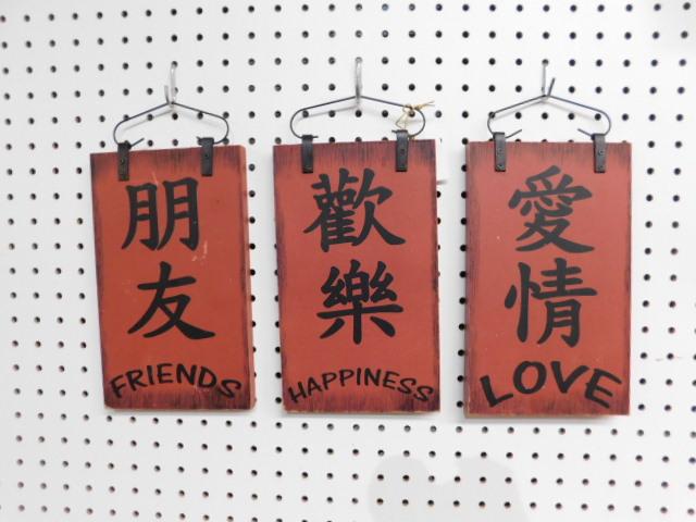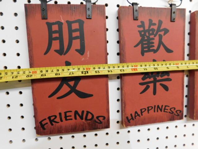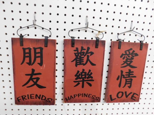 Wood and Metal Asian 3 Panel Greeting Signs 6"x10" each