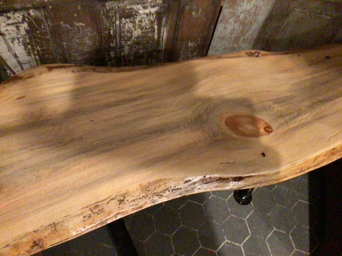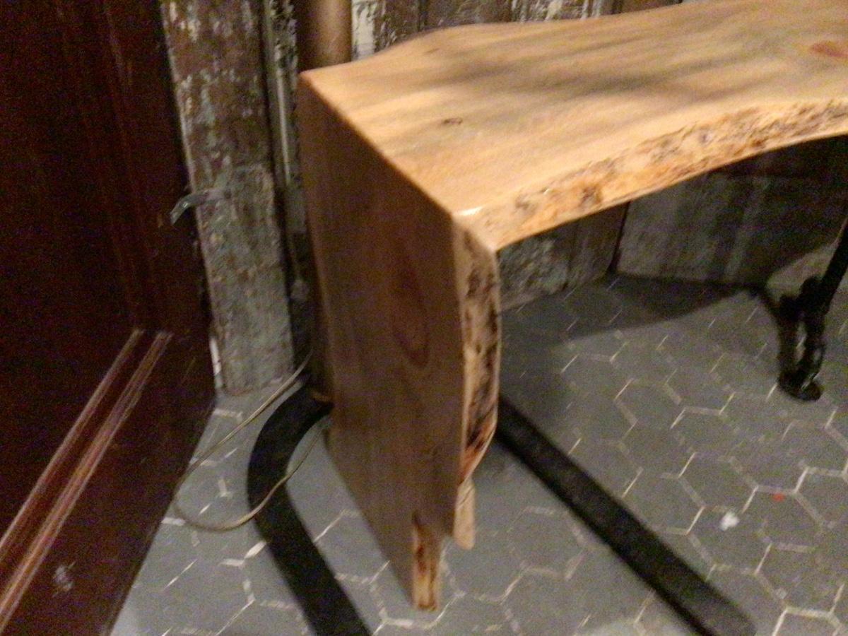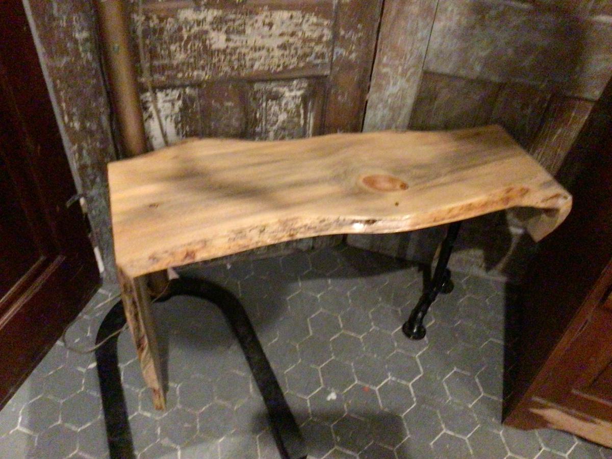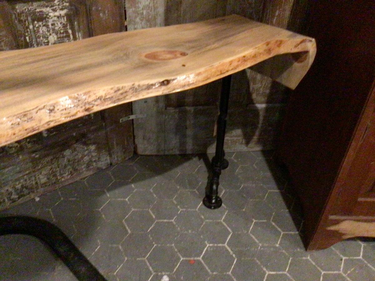 This is a great wood with a metal pipe leg bench or table.