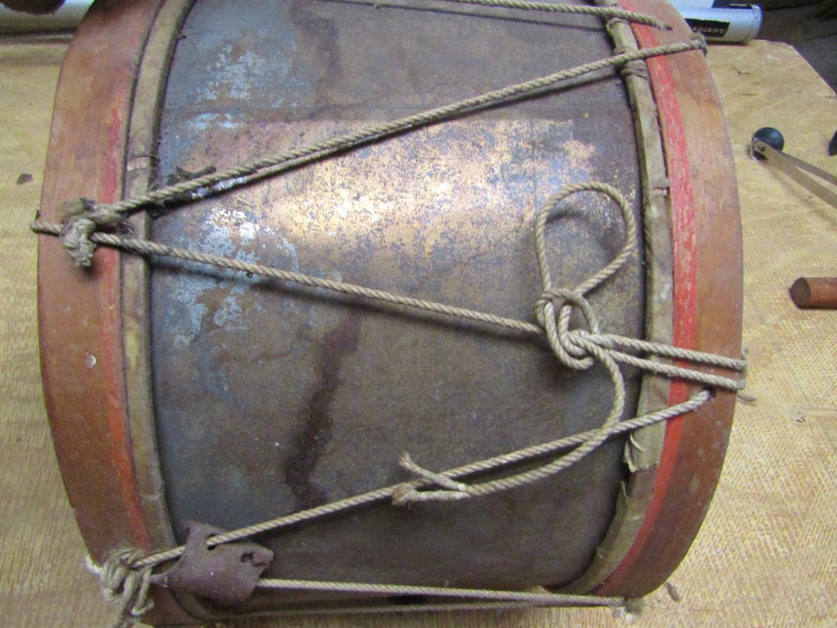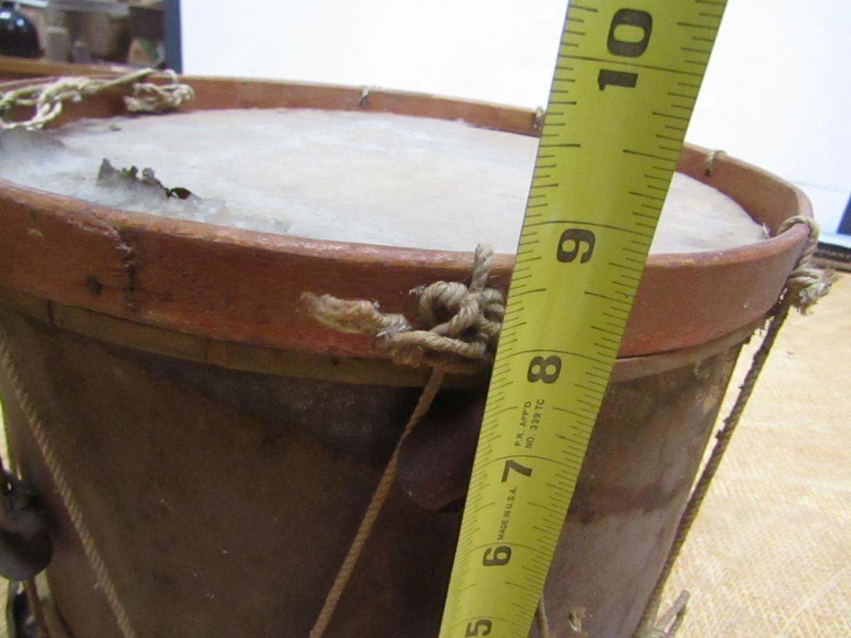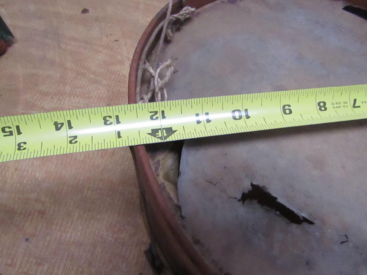 Wood and Metal Drum- Approx 12 1/2" in Diameter. Needs repair- not in functional condition.