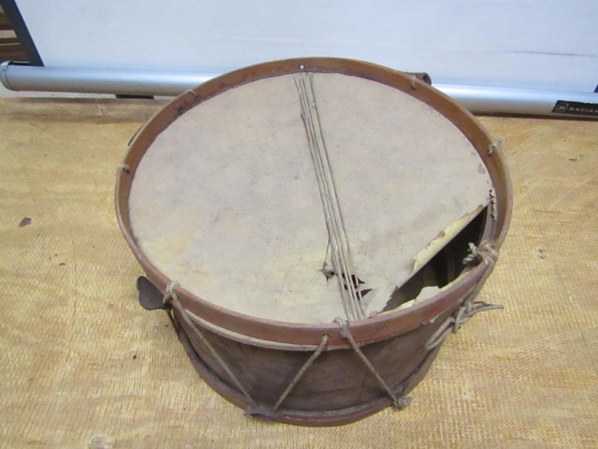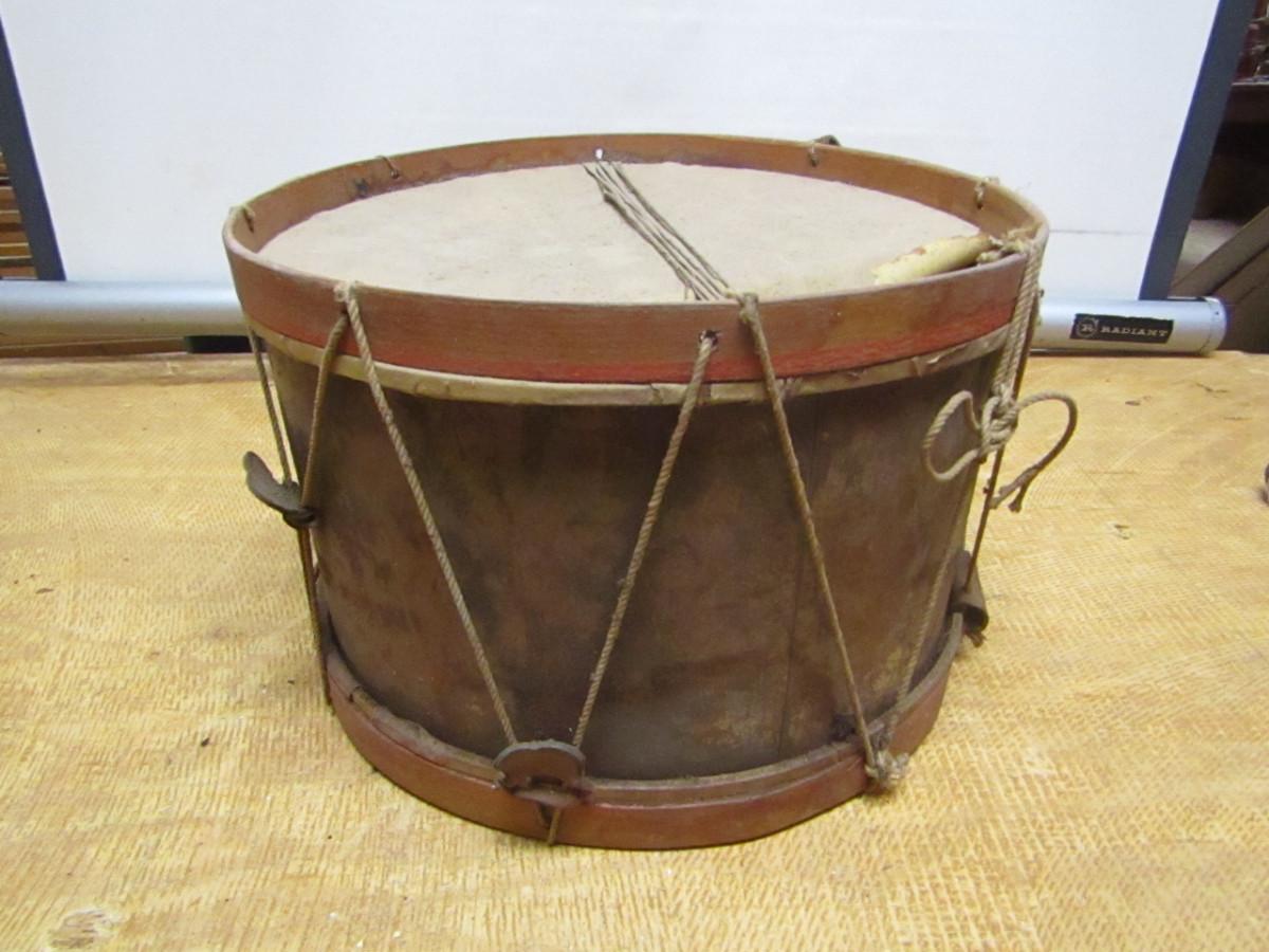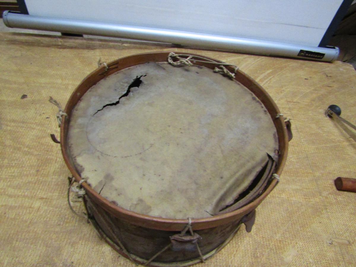 Wood and Metal Drum- Approx 12 1/2" in Diameter. Needs repair- not in functional condition.