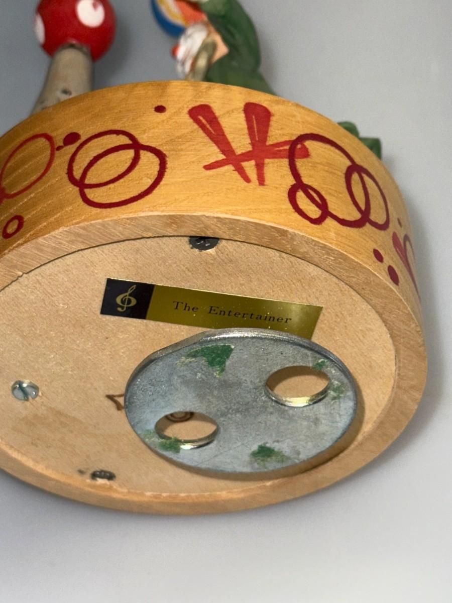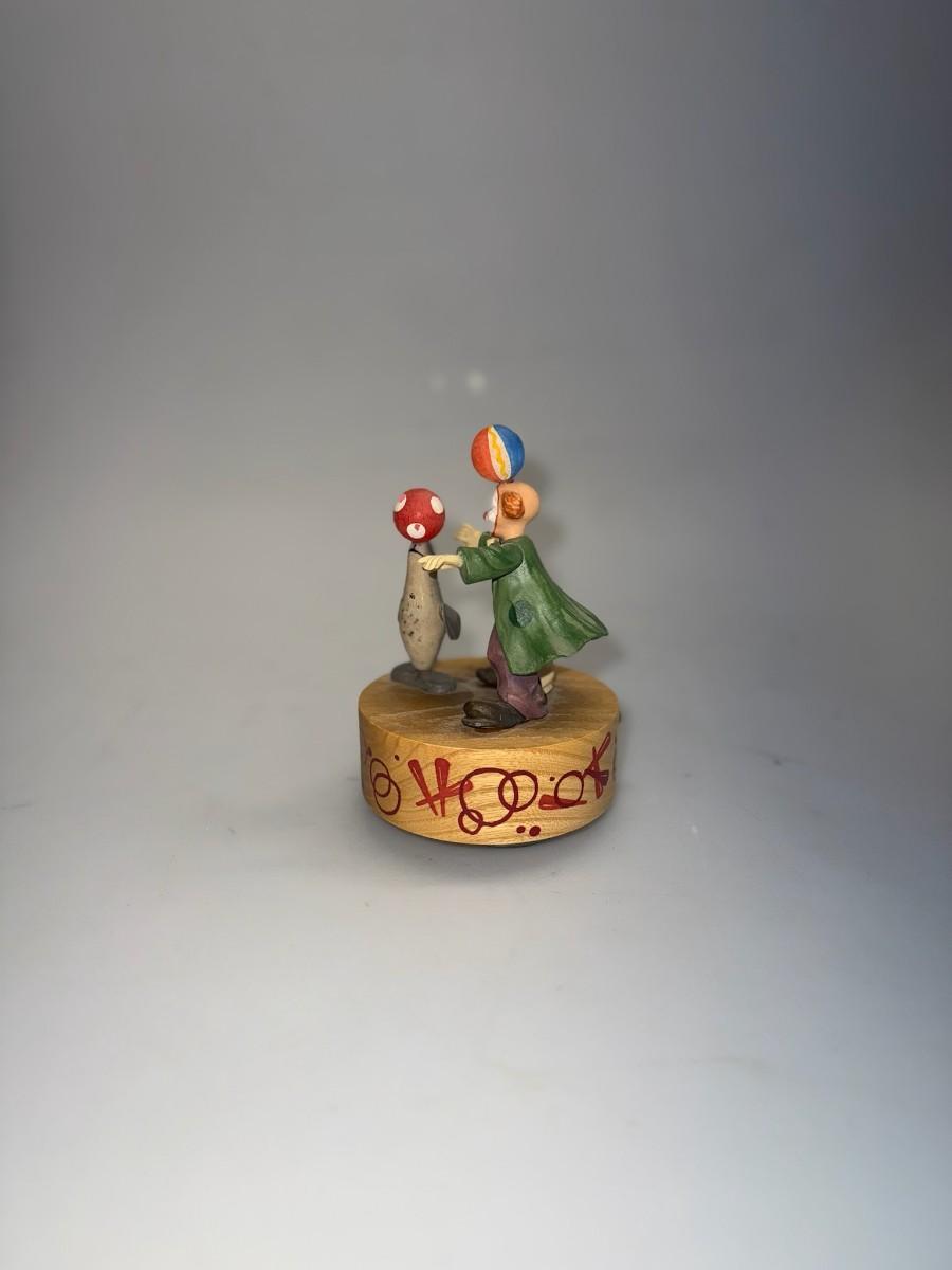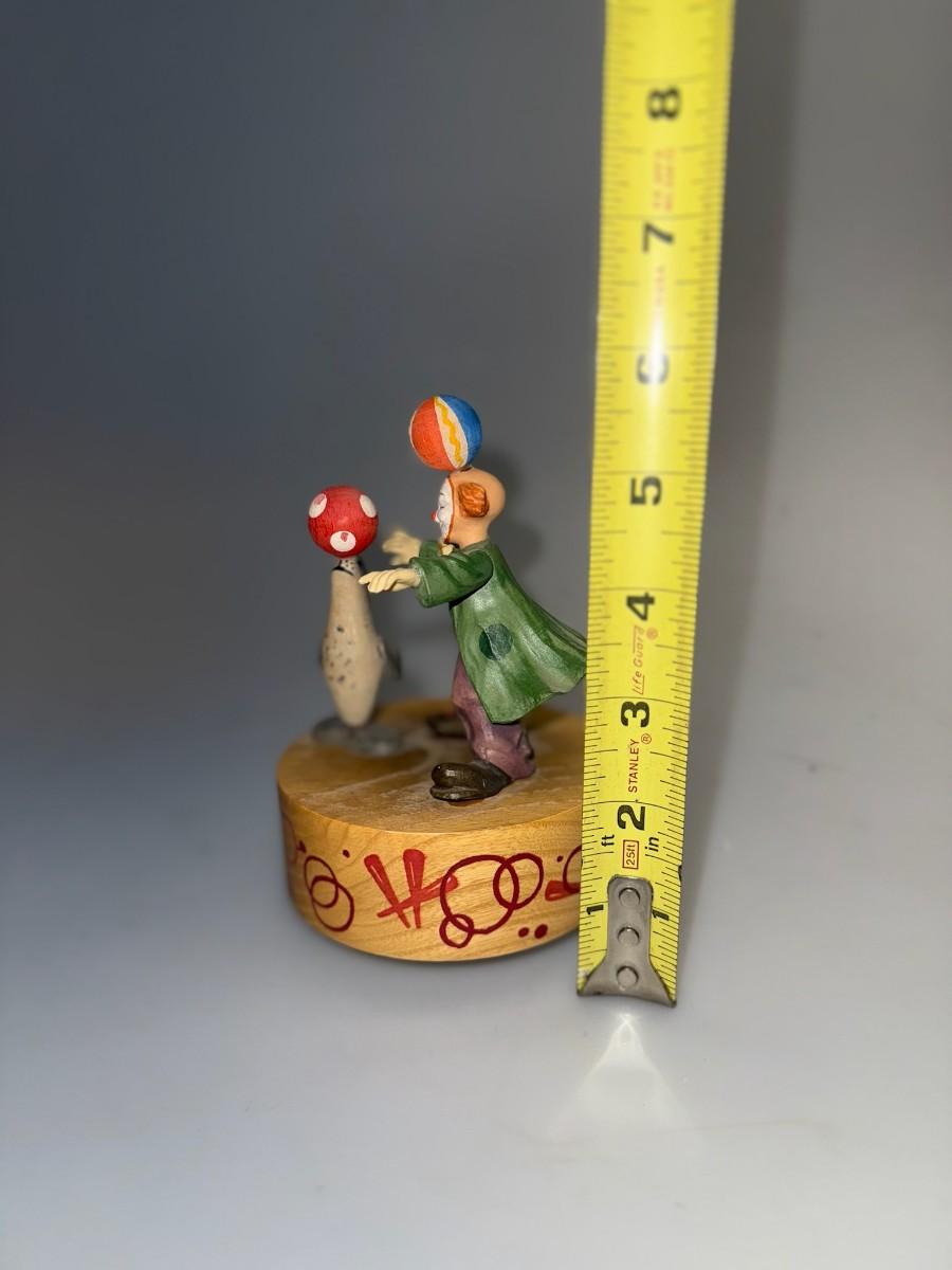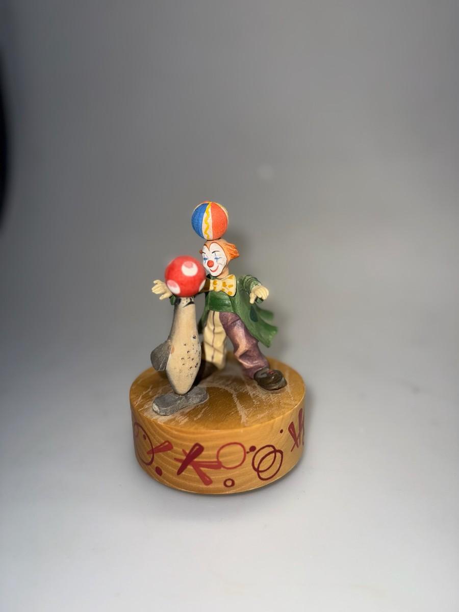 Wood ANRI Spinning Music Box Clown Seal Plays "The Entertainer" Hand Crafted in Italy