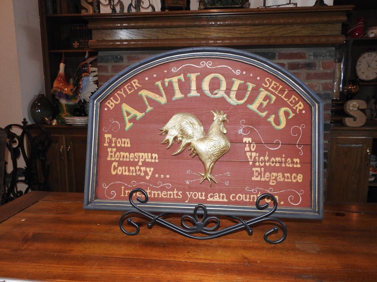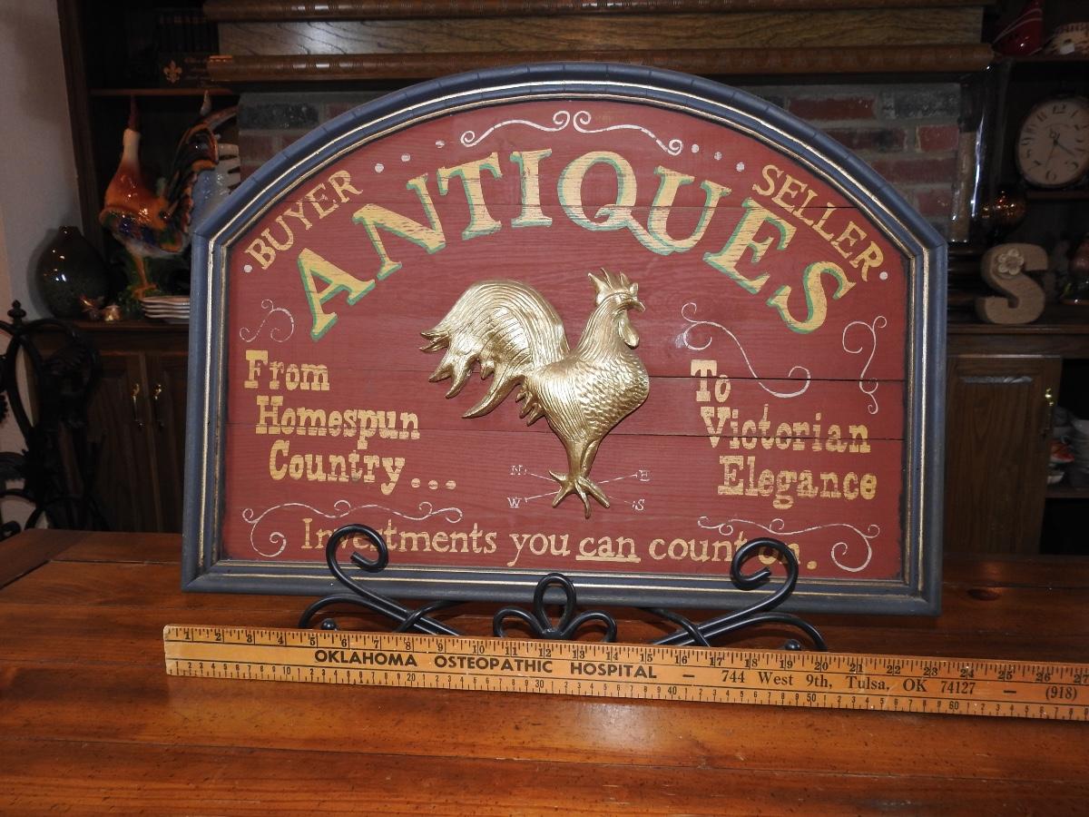 Neat wood antiques sign measures 18” by 23” wide in great used condition holder not included
