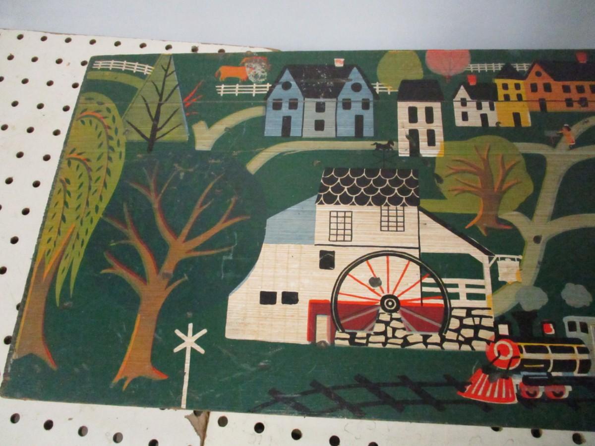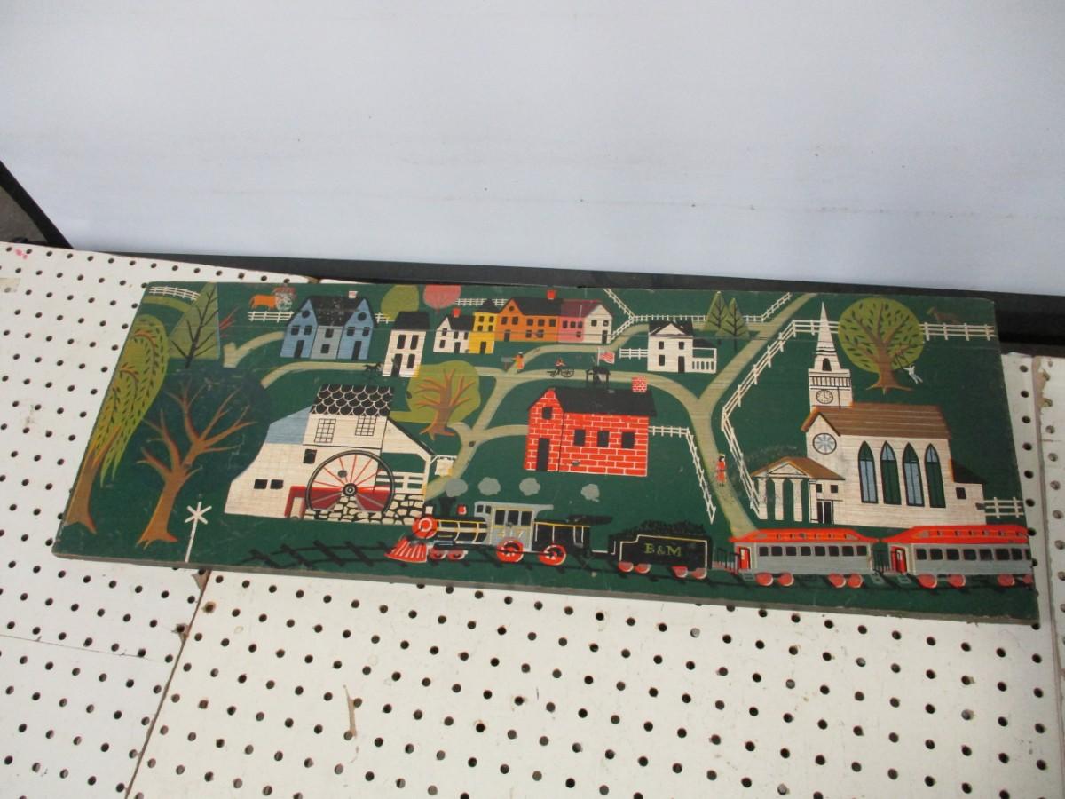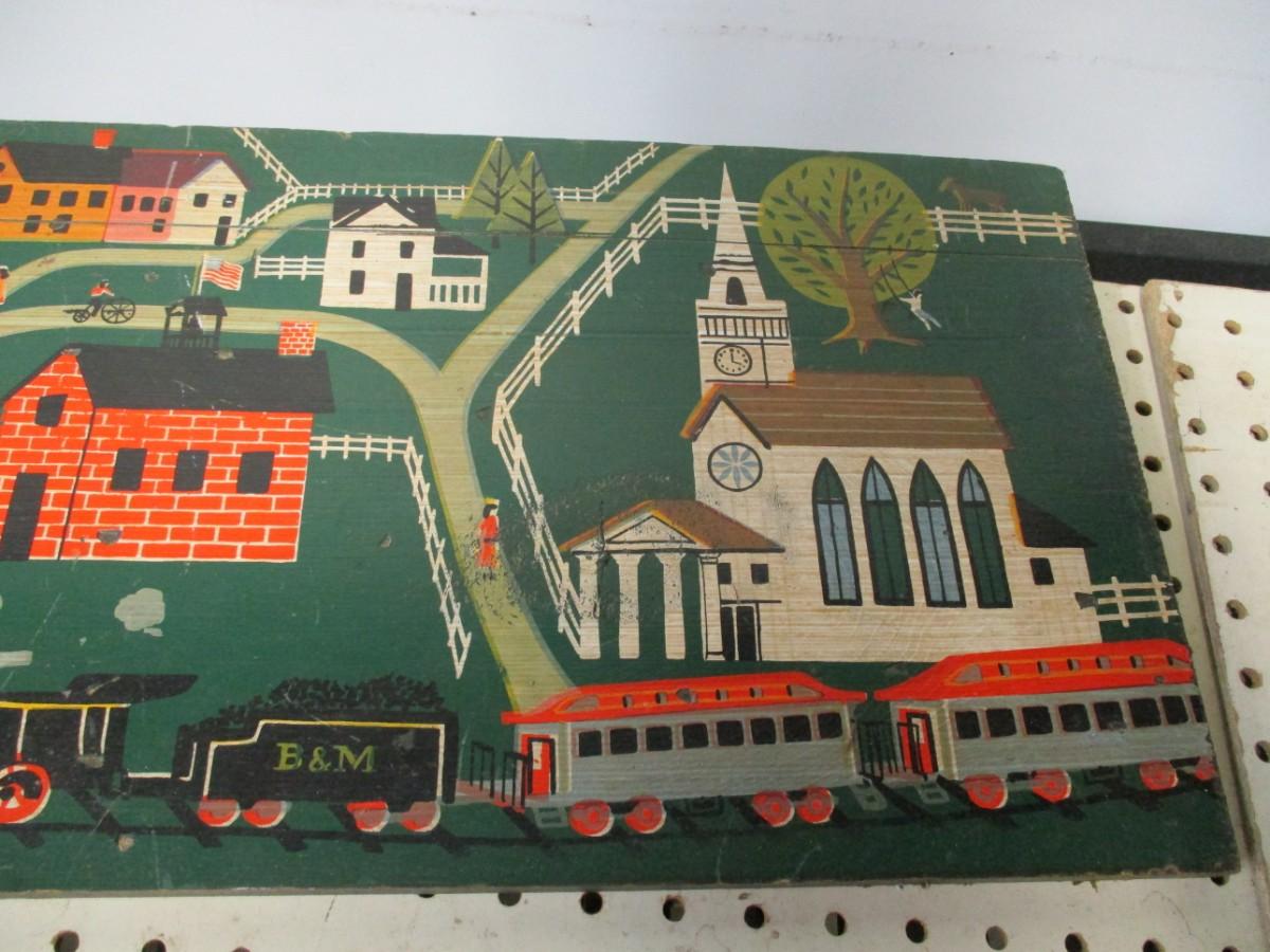 Wood Art Folk Village Train Church Country